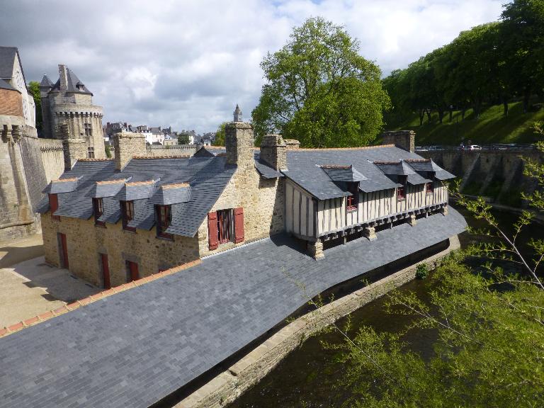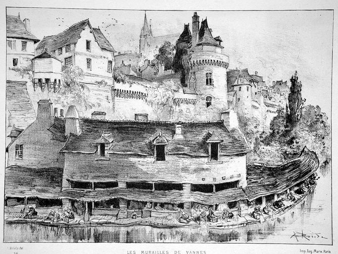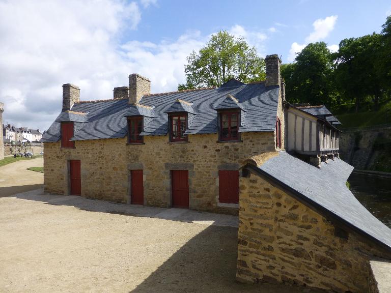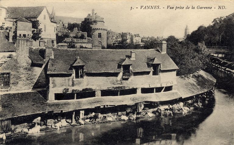 Les Lavoirs de la Garenne sont construits d'après les archives entre 1817 et 1821 sur la rive droite de la rivière et se raccrochent à un bâtiment perpendiculaire déjà existant sur le plan cadastral de 1807. En 1816 le sieur Mayeux, maçon, s'offre de faire construire à cet emplacement communal dit du "bas de la Garenne" dont il demande la concession, une buanderie et un hangar sur pilliers couvert en paille avec des lavoirs afin que "le public [dit-il] soit à couvert dans la mauvaise saison et sans aucune rétribution", ce dernier n'exigeant que l'emplacement par la ville de sa buanderie. Sa demande est refusée mais semble t-il reprise par Ponce Marie Quennec, jardinier, qui en est propriétaire en 1822. Les bâtiments se retrouvent par la suite entre les mains de la famille Taslé et de leurs descendants qui les vendent à la ville de Vannes en 1928. La façade sud de corps montre un agrandissement vers l'ouest. Le plan cadastral de 1844 présente à l'arrière du bâtiment un petit corps carré renfermant peut-être un escalier. Les rez-de-chaussées de ces deux bâtiments sont réservés aux buanderies alimentées par des cheminées tandis que les étages sont utilisés pour des logements. La restauration des lavoirs a été effectuée à la fin du siècle dernier. Le projet, confié à l’architecte du patrimoine Philippe Prost, avait pour objectif la sauvegarde et la mise en valeur de l’édifice par un rejointoiement de ses façades en pierre au mortier de chaux naturelle, une réfection de ses charpentes et de ses couvertures, la reprise de la structure à pans de bois, le remplacement de ses menuiseries extérieures et la construction à l'est d’un nouveau bâtiment. Les intérieurs ont été également restaurés. Pour permettre une meilleure distribution de l’étage, une coursive extérieure a été créée à l’arrière du bâtiment.