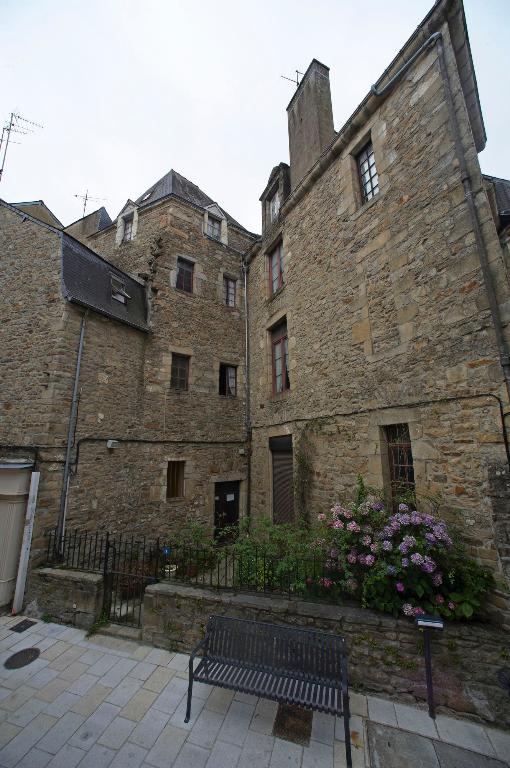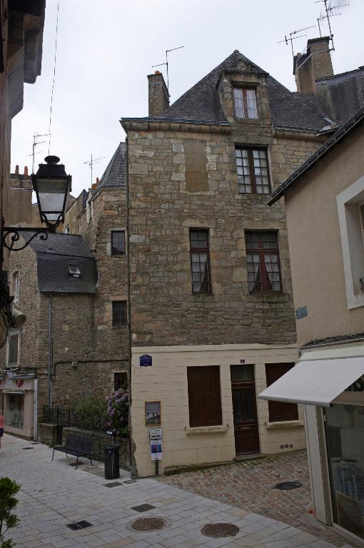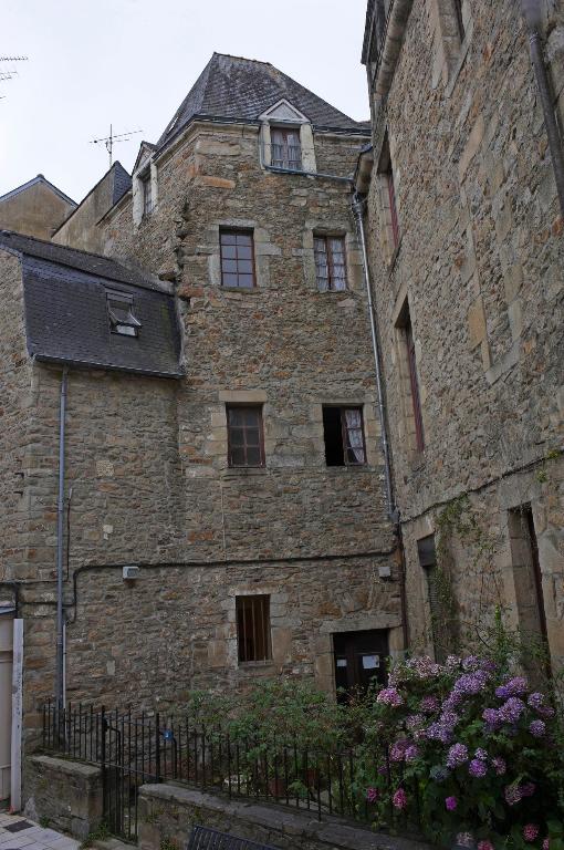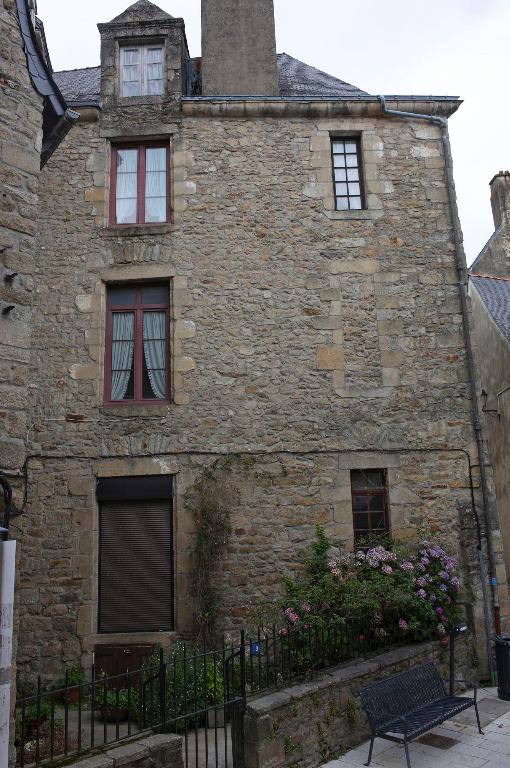 La maison se compose au départ d'un plan simple : la tour d'escalier est traitée comme la partie majeure de l'édifice et sa plus grande hauteur, comme sa toiture en pavillon, témoigne de son importance. L'entrée dans l'édifice se fait par la tour qui dessert au rez-de-chaussée deux pièces au nord, une au sud. Les deux portes jumelées desservent les pièces du corps principal nord. L porte ouest dessert la cuisine, éclairée par deux fenêtres hautes car donnant sur le jardin voisin, plus haut ; sa cheminée, sans doute en granite, contre le mur ouest entre les deux fenêtres a été démontée ; la cuisine a été plus tard divisée dans la profondeur, créant une arrière-cuisine. La seconde porte à l'est dessert la pièce principale qui avait une cheminée sur le mur gouttereau nord, aujourd'hui disparue. Cette pièce est divisée en deux par une cloison ancienne, délimitant une pièce d'angle non chauffée ; cette pièce, peut-être une alcôve à l'origine, a été transformée en magasin à la fin du 19e siècle par la création d'une devanture supportée par des piliers de fonte, conservés malgré la modification de cette boutique avec reconstruction de son mur de façade vers 1930.