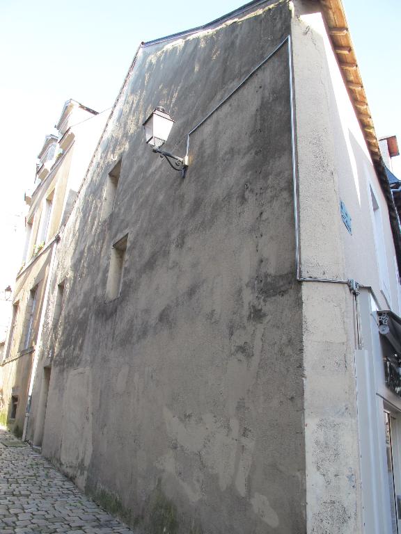 Maison construite sur une parcelle d'angle, en maçonnerie enduite, avec petit pan coupé en pierre de taille sur l'angle. De plan massé irrégulier, double en profondeur, elle possède un étage carré surmonté d'un comble à surcroît. Un escalier en vis adossé au centre du pignon ouest, était accessible en demi-niveau à partir de la rue (en raison de la pente de la rue) par une porte aujourd'hui bouchée. L'intérieur au rez-de-chaussée ne montre ni traces de divisions, ni vestiges d'origine du bâtiment. A l'étage, contre le mur gouttereau nord, subsiste une cheminée du 17e siècle, en pierre à consoles en quart de rond.