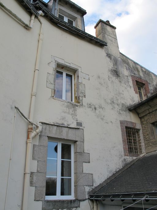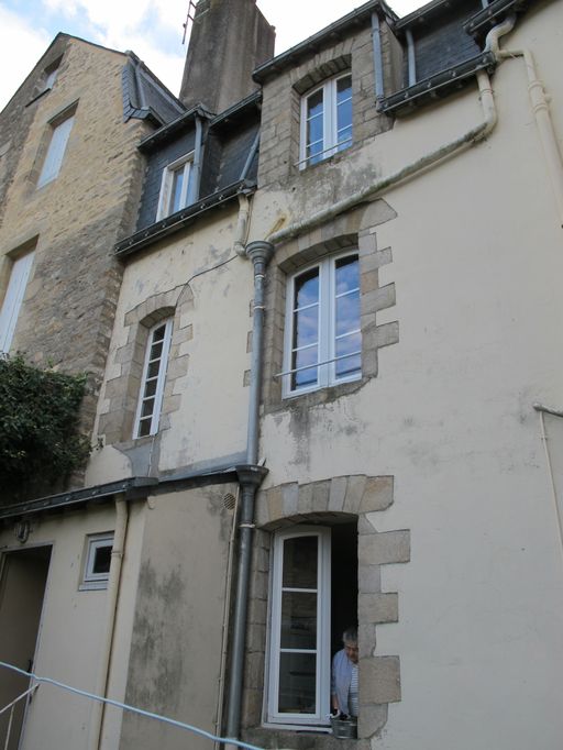 Ensemble de deux maisons édifiées en bordure de l'enceinte dont une est reconstruite en pierre au 18e siècle sur l'emplacement d'une maison plus ancienne en pan de bois dont il reste une partie du mur latéral. La seconde est d'après une information orale bâtie sur une venelle qui bordait la tour poudrière. D'après la réformation et le chanoine Le Mené, ce sont des maisons prébendales appartenant en 1677 à Jean Chaudodineau et à André Le Puhé, archiprêtres de la cathédrale. La cheminée du mur de refend dont la souche est encore visible en toiture a disparu.