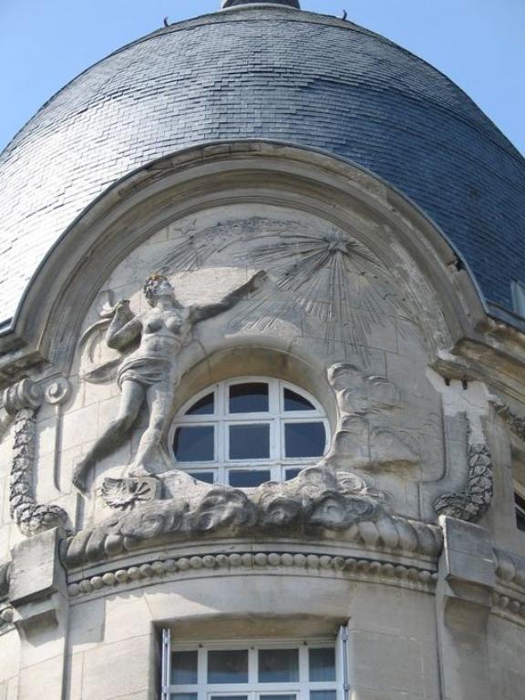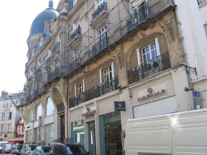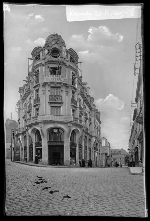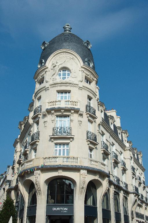 Important immeuble construit en alignement de rue sur une large parcelle d'angle. A plan double en profondeur, l'immeuble montre une élévation sur entresol de 4 étages carrés sous dôme circulaire et de 2 étages carrés sous toit à longs pans brisés. La partie d'angle est traitée en rotonde sur de hautes arcades et reçoit un décor néo-classique en calcaire. Pour l'édification de la coupole, l'édifice est en béton armé enduit selon le procédé Hennebique. Soubassement partiel en granite .
