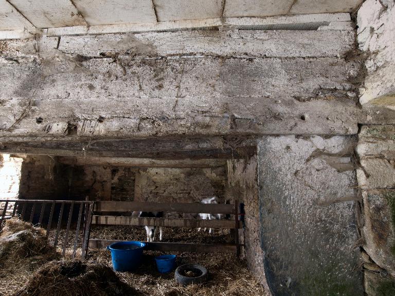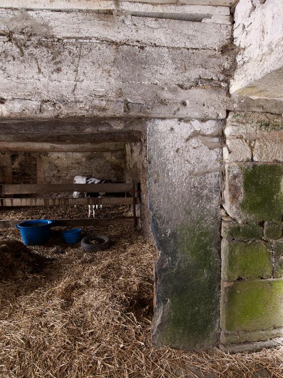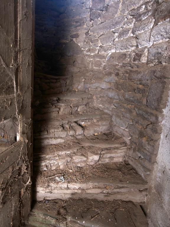 Par ailleurs, la présence d'une tourelle d'escalier qui ne figure pas sur le plan cadastral de 1840 desservant le grenier du logis-étable suscite quelques interrogations. Les traces de rupture dans la maçonnerie indiquent que la tour n'a pas été réalisée en même temps que le logis-étable et son absence sur le cadastre napoléonien laisse penser qu'il pourrait s'agir d'une réalisation postérieure à 1840. Si tel est le cas, ce procédé serait particulièrement rare, car la tour d'escalier n'est en général plus utilisée au 19e siècle. Elle témoignerait donc d'une volonté délibérée des propriétaires de copier des modèles anciens : la persistance de la symbolique de la tour, attribut de la maison noble, serait alors révélatrice de la richesse et de l'importance de la famille au 19e siècle. (C Toscer)