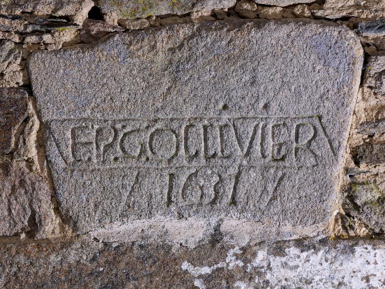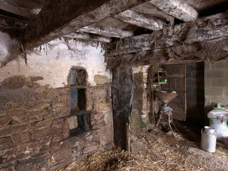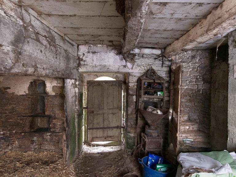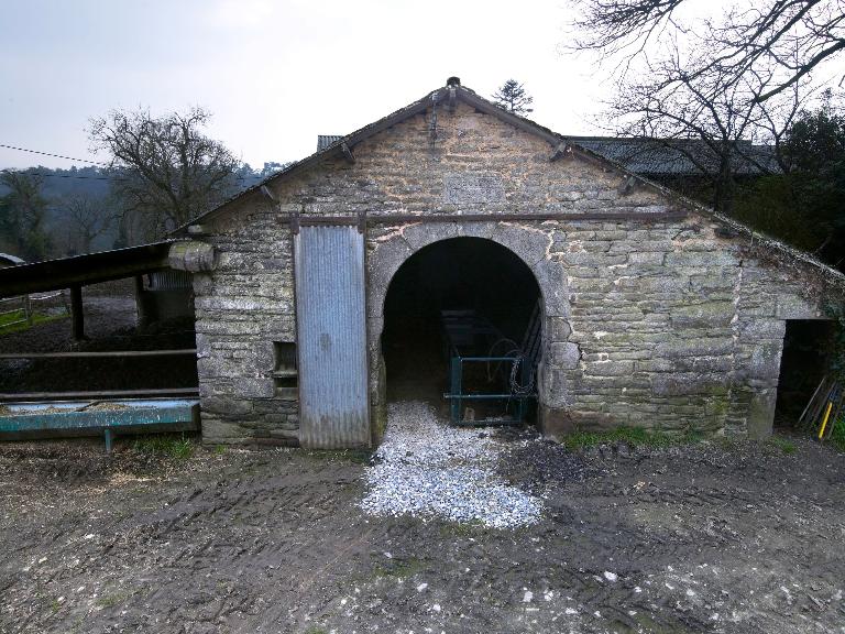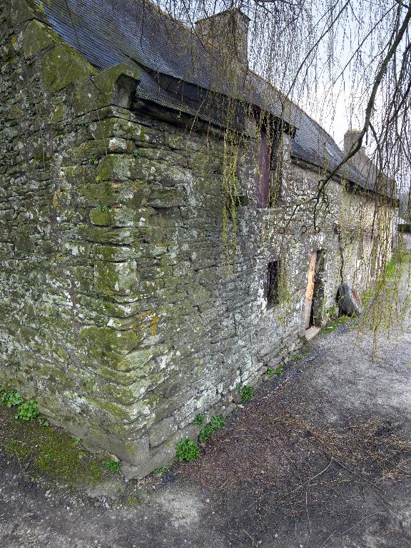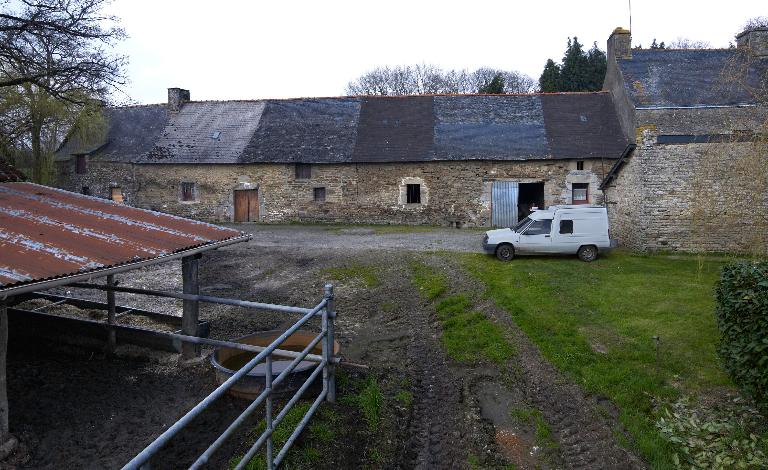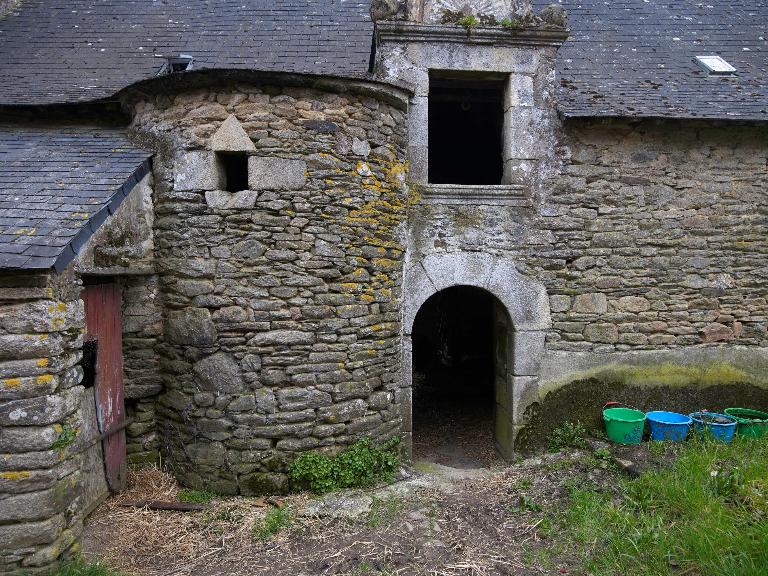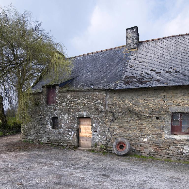 L’existence de logis en alignement déclassés en dépendance est un phénomène récurrent. Cependant, même si elles ont subi quelques modifications, les différentes parties sont ici bien lisibles : il s'agit tout d'abord du modèle connu associant un logis à étage à un logis-étable bas ; l'absence de reprise nette les deux parties prouve que leur construction est contemporaine, effectuée d'après les inscriptions autour de 1650 par G. Ollivier, un laboureur visiblement prospère. La présence d'inscriptions et de dates, pour certaines remployées, renseignent sur les modifications successives de la ferme. Bien qu'il s'agisse certainement d'un remploi, la lucarne Renaissance donnant sur la rue est un élément particulièrement intéressant, car hormis celles visibles au bourg, seule une autre ouverture de ce type a été observée sur la dépendance d'un ancien manoir du 18e siècle, à Coët-Daly.