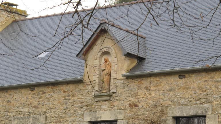 L'école était probablement enduite à l'origine. A noter, l'utilisation de la brique dans l'encadrement de la niche, ainsi que la présence d'une croix fichée dans un haut soubassement de pierres, réalisée lorsque les sœurs du Saint-Esprit de Saint-Brieuc enseignaient à l'école.