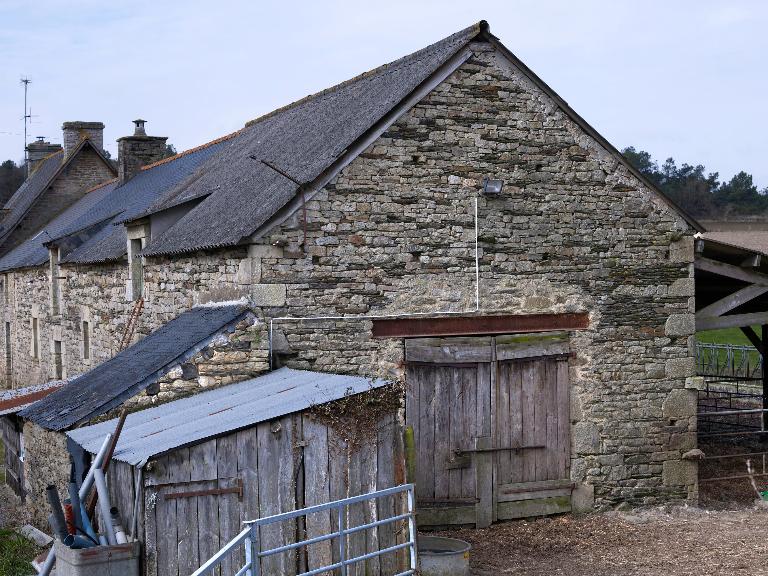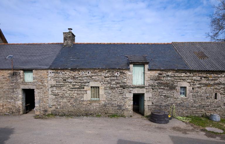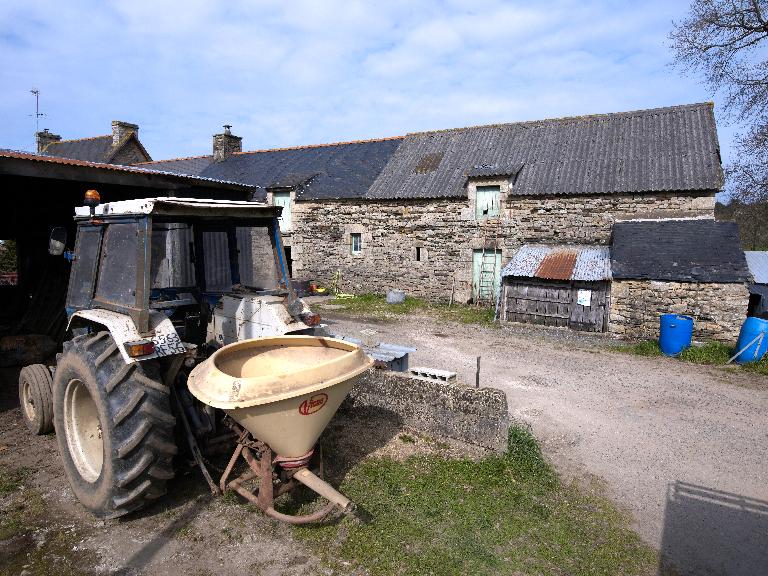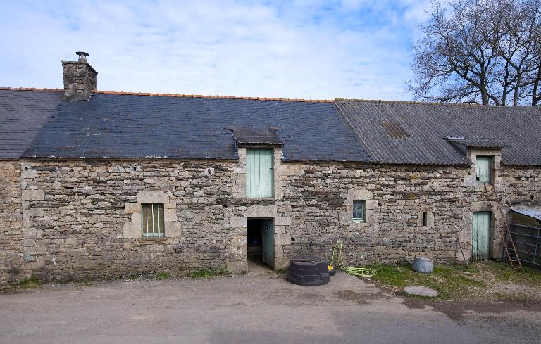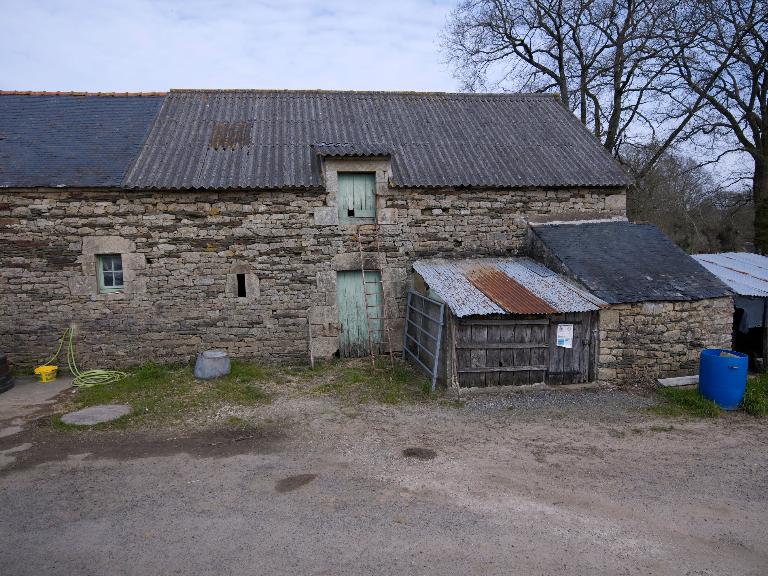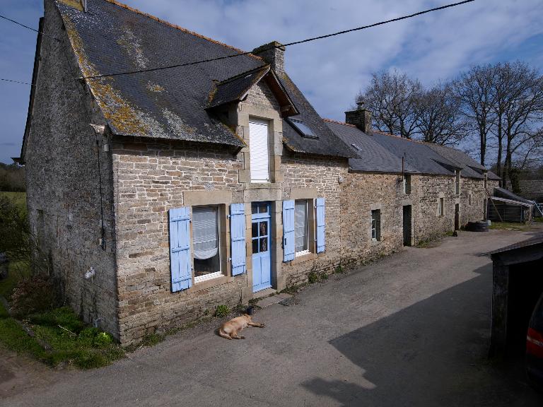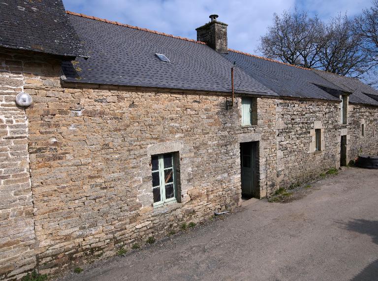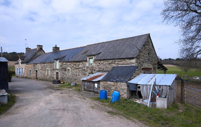 La ferme se compose d'un premier corps de bâtiment daté 1827, construit en moellon de granite et schiste. Elle appartient au type logis-étable à deux portes et est surmontée d'un comble à surcroît à gerbière passante. Deux nouveaux logis sont édifiés à l'ouest, en alignement : le premier est à pièce unique, le second est à deux pièces en rez-de-chaussée et comble à surcroît.