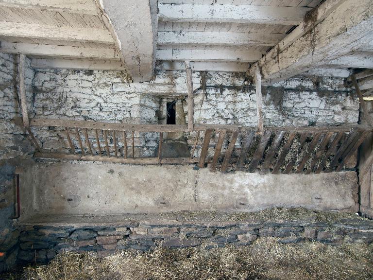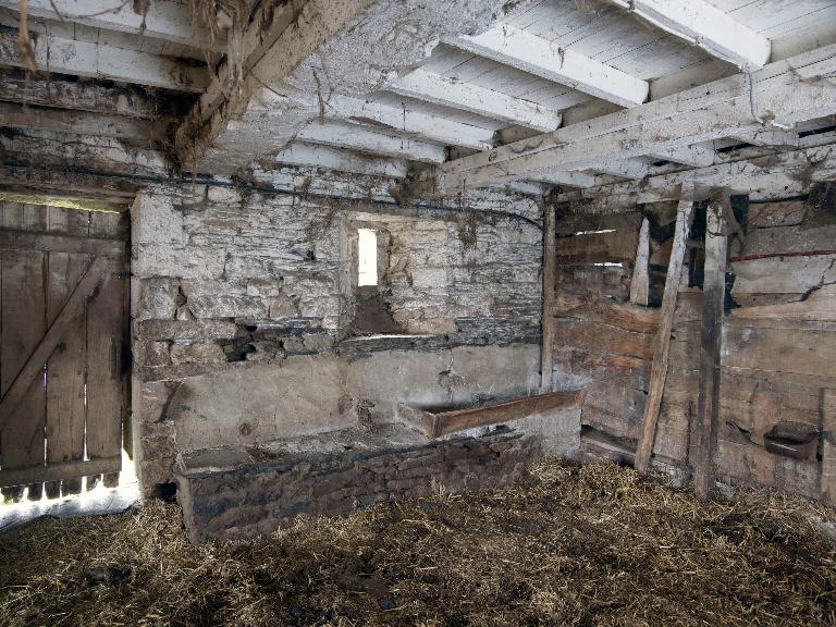 La première ferme, à la mise en œuvre de schiste et de granite de qualité, étonne par sa taille, les modifications à la suite de sa transformation en étable au début du 20e siècle empêchant cependant la compréhension de sa structure initiale : ainsi, quel était le rôle de la seconde fenêtre en pierre de taille du logis ?.La présence de deux jours dans l'étable indique la taille de cette dernière, et donc la richesse de la ferme, même si la partition intérieure a disparu. S'il s'agit bien d'une ferme de 1827, il est certain qu'elle a remplacé une ferme plus ancienne également riche au regard de la cheminée remployée.(C. Toscer)