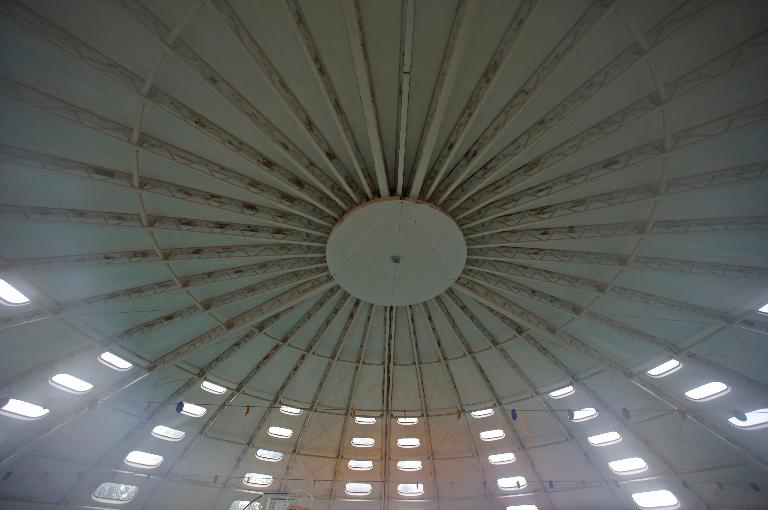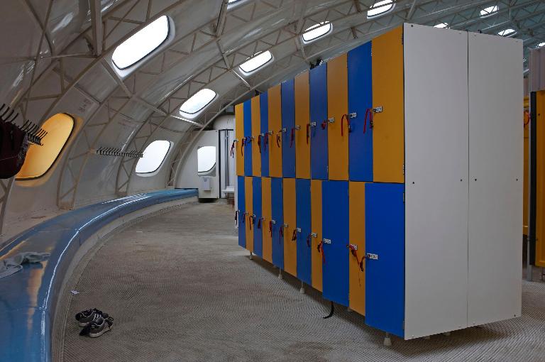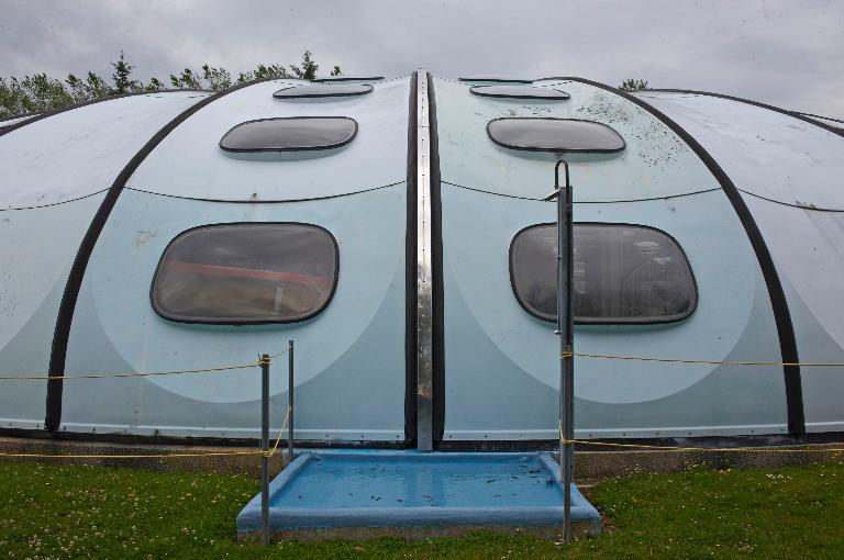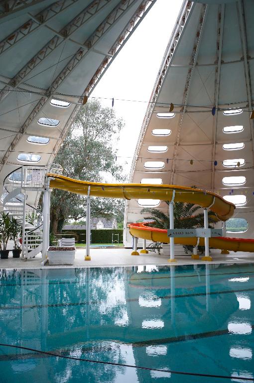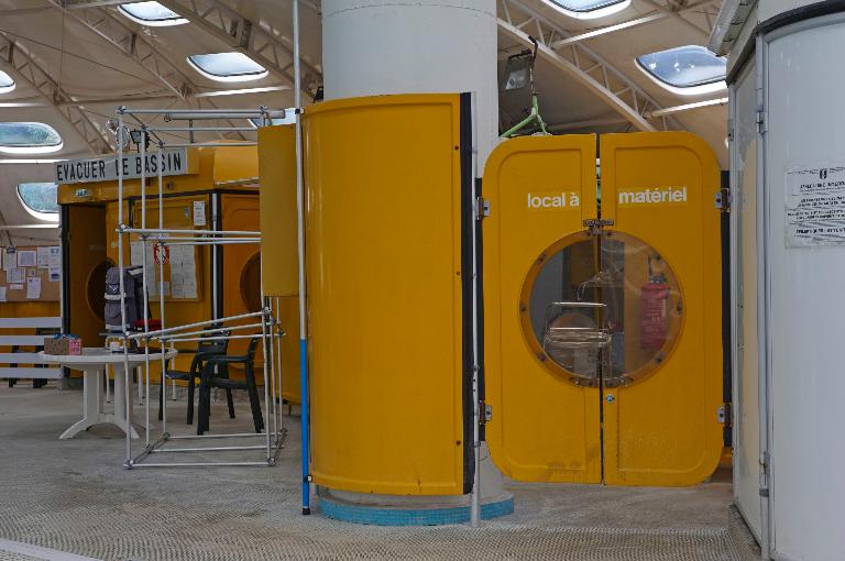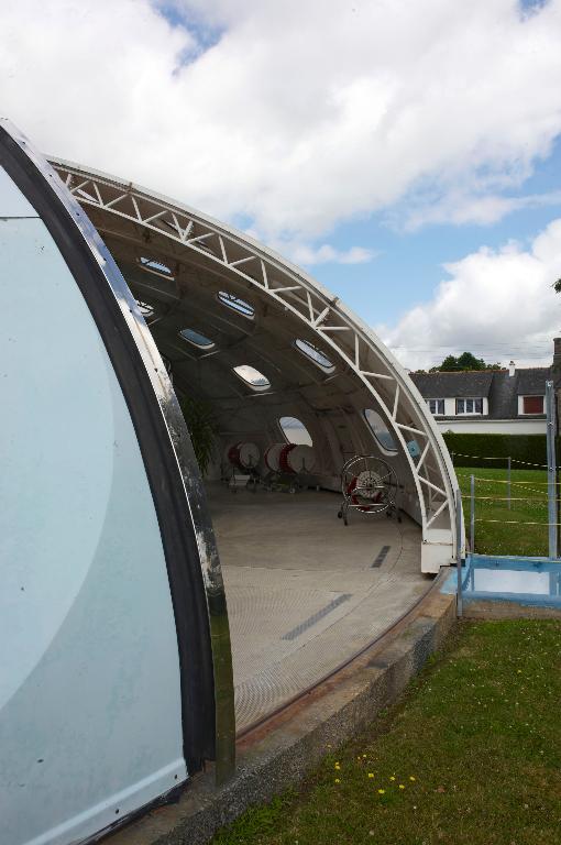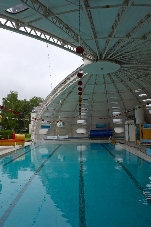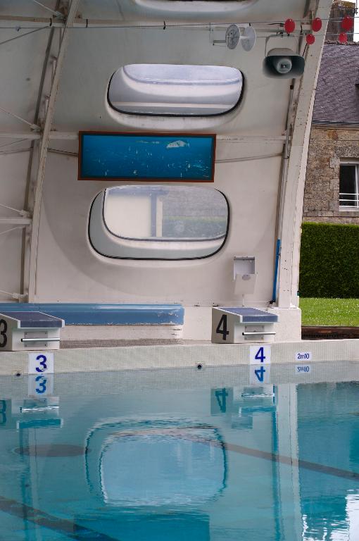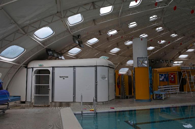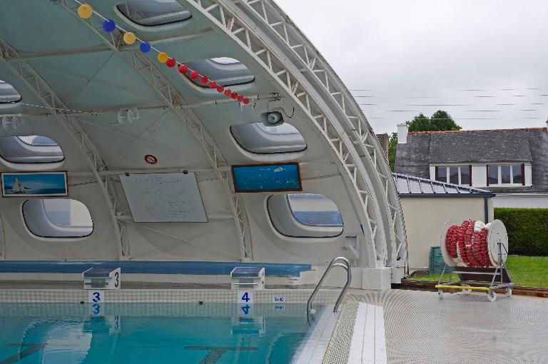 Une des dernières piscines Tournesol conservées en Bretagne. Son remplacement par un nouvel équipement a cependant été décidé en 2015 et la démolition devrait intervenir fin 2018.