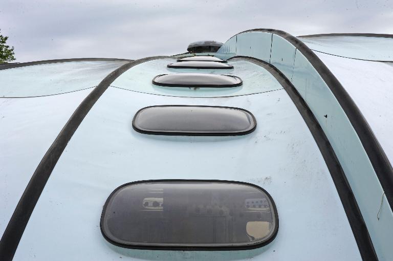 Les caractéristiques sont celles de toutes les piscines Tournesol : un bassin de 25 m x 10 m abrité sous une coupole en tuiles polyester percée de hublots circulaires, dont un secteur de 120 degrés orienté au Sud-Est s’ouvre en dégageant toute la longueur du bassin.