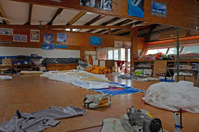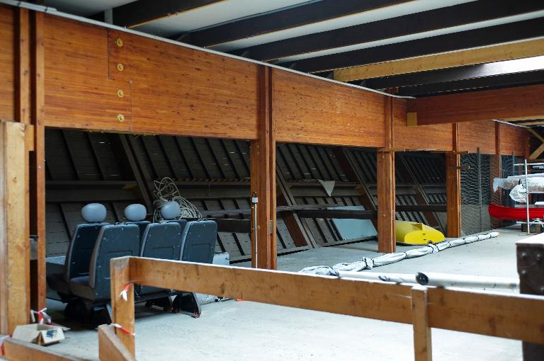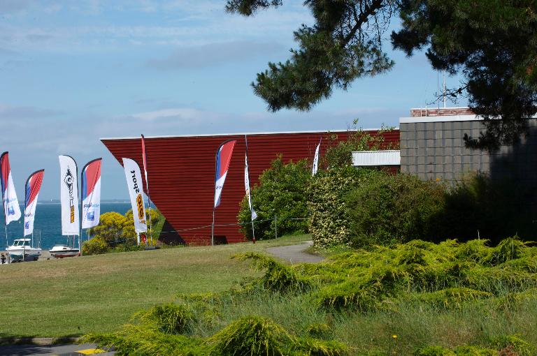 Internat (bâtiment Régate) : barre orientée est-ouest qui s’élève sur trois niveaux. L’entrée s’effectue soit sur le pignon sud, soit au centre de la façade ouest. Sur les plans d'origine, le rez-de-chaussée accueille des chambres, un espace de soins médicaux, des bains et sanitaires et une lingerie. Les pièces étaient disposées de part et d’autre d’un couloir central traversant l’édifice dans sa longueur et interrompu en son milieu par une grande salle de musculation traversante occupant presque un tiers de la surface du rez-de-chaussée. Des escaliers à deux volées parallèles avec palier intermédiaire sont disposés aux extrémités nord et sud. La cage d’escalier sud est percée de grandes baies vitrées alors que la cage nord est aveugle. Les deux étages comportaient 40 chambres de 10 m2 distribuées par un couloir central. Dans les angles sud-ouest et nord-ouest étaient aménagés douches et sanitaires. Les deux façades principales présentent un fenestrage continu agrémenté de panneaux bardés d’ardoises et disposés à cheval entre deux chambres, chacune disposant ainsi d’une grande fenêtre en pied et d’une petite fenêtre haute.