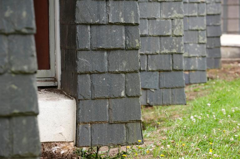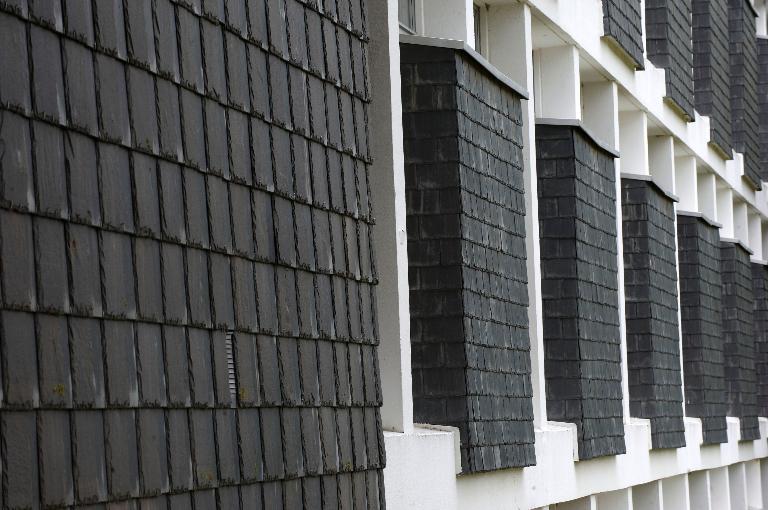A l'exception des locaux techniques, bardés de lattes de bois posées horizontalement et peintes de couleur rouge brique, tous les bâtiments présentent les mêmes caractéristiques architecturales : construction à ossature et planchers béton armé ; couverture en terrasse avec étanchéité sur support lourd ; revêtement général des façades aveugles et de tous les fronts et acrotères en ardoises naturelles ; menuiseries extérieures en aluminium anodisé.