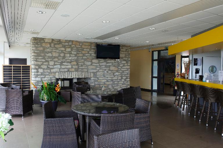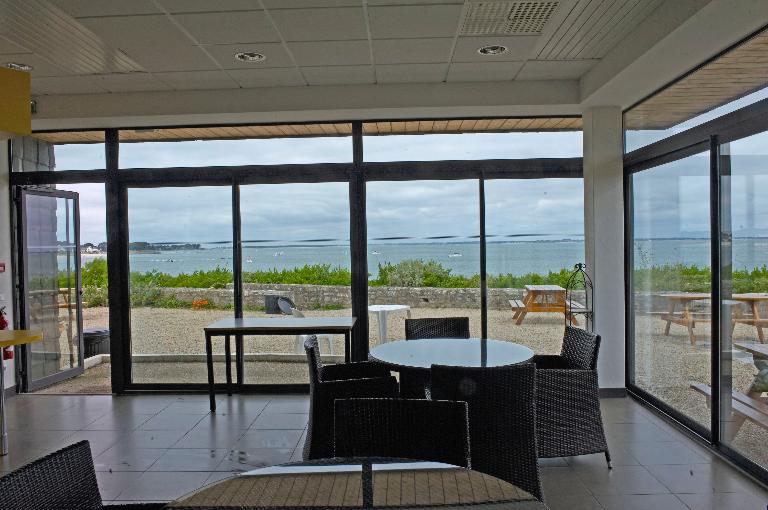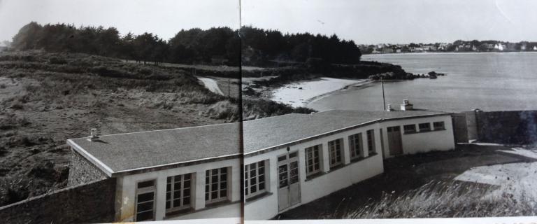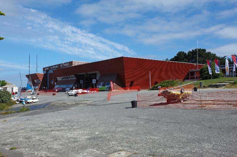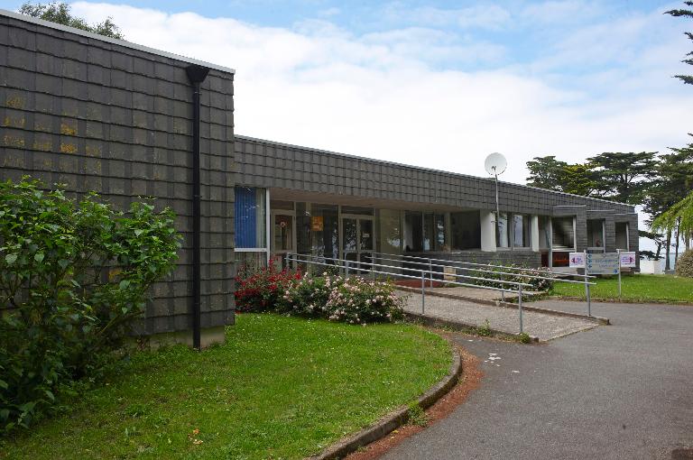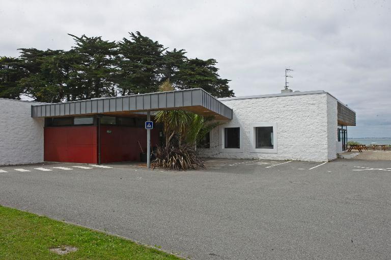 Bâtiment restauration : comprenant deux niveaux (rez-de-chaussée et sous-sol), il se compose de deux blocs reliés par le hall d’entrée précédé d’un petit portique. Le bloc ouest comprend les salles à manger des stagiaires (qui occupent quasiment la moitié nord du bloc), celle des agents et des cadres, la cuisine, les sanitaires, le magasin, les stocks, etc. ainsi qu’un espace laverie et une réception. Une entrée débouchant sur un couloir menant à la grande salle à manger est aménagée côté sud. Le bloc est, moins important, comprend une salle de détente avec une cheminée, ainsi qu'une salle de télévision et musique. Une terrasse est aménagée au nord, côté mer. Au sous-sol se trouvent les réserves, un congélateur et la chaufferie. Le bâtiment est bardé d’ardoises, hormis les côtés est et sud du bloc détente, en pierres. On retrouve des redans ajourés au nord-ouest. La façade nord est pourvue de grandes baies horizontales. La façade sud s’ouvre en plusieurs endroits par des portes vitrées et des fenêtres. Datant de 1970, le bâtiment a été restructuré et rénové en 2009 par l'architecte A. Le Masson, qui a réalisé en outre une extension du hall et des sanitaires et y a introduit de nouveaux matériaux : zinc prépatiné, panneaux de bardage rouge pourpre, habillages en clins bois à claire-voie, et de minces profilés en aluminium laqué gris anthracite. Le bloc loisir a été percé de grands hublots côté mer et au niveau des redans. Un auvent a été aménagé devant l’accès principal. La cuisine a été transformée en self et un bar a été aménagé dans la cafétéria.