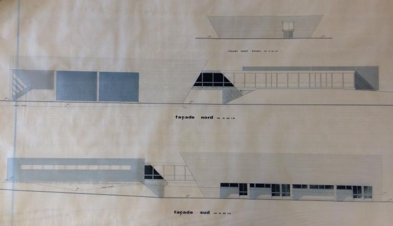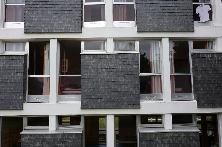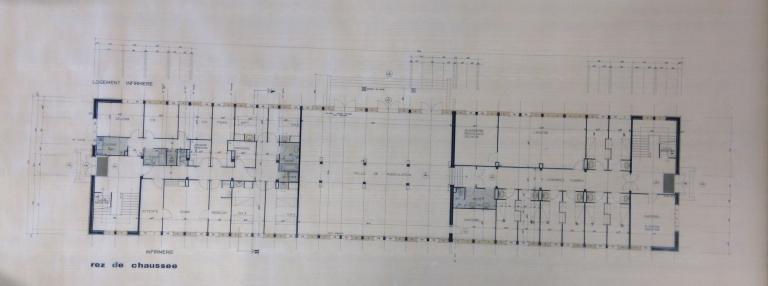 Logements de fonction : ces deux bâtiments se situent à l’ouest du site, à l’écart du reste du campus. Construits sur le même plan, ils se composent de deux blocs rectangulaires contenant chacun un logement : un de 4 pièces à l’ouest et un de 5 pièces à l’est (entrée, séjour, cuisine, salle de bain, w. c., 3 ou 4 chambres). Les deux blocs sont reliés par les garages disposés au centre de la composition. On retrouve des fenêtres montées dans les redans à côté de la porte d’entrée, au niveau de la salle de bain et des w. c. pour le 4 pièces et des w. c. et d’une chambre pour le 5 pièces.