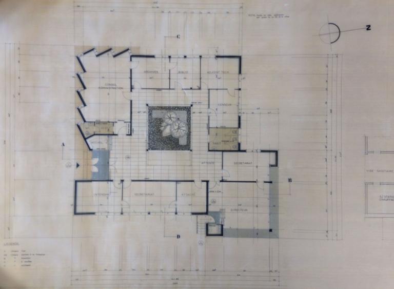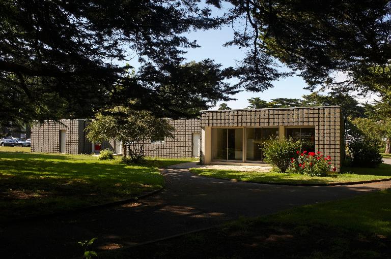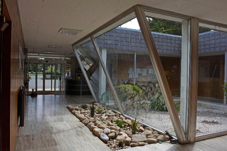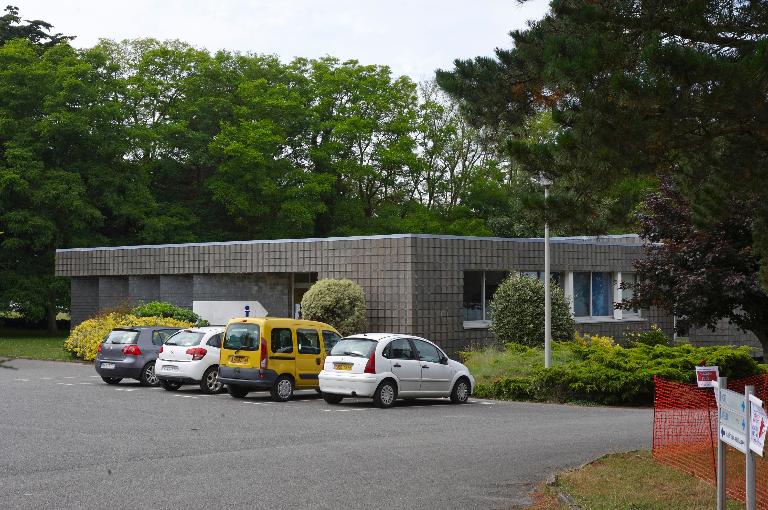 Bâtiment administration : édifice au plan sensiblement carré organisé autour d’un patio, il s’élève sur un seul niveau et est couvert d’un toit terrasse. Hormis un soubassement en granite, le bâtiment est intégralement bardé d’ardoises et percé d’ouvertures de formes et de dimensions variables, du mince bandeau de fenêtres à la grande baie vitrée horizontale. On accède à l’intérieur par une grande porte vitrée située au sud. Les pièces sont distribuées par une galerie qui ceint le patio central. A gauche de l’entrée, dans l’angle sud-ouest, se trouve la salle du conseil d’administration dont la paroi est à redans ajourés de baies verticales. Le bureau du directeur et son secrétariat sont logés dans l’angle opposé traité en saillie. Divers bureaux, un secrétariat, le service des stages, une salle d’archives, l’accueil, un vestiaire et des w. c. se partagnet le reste de l'espace.