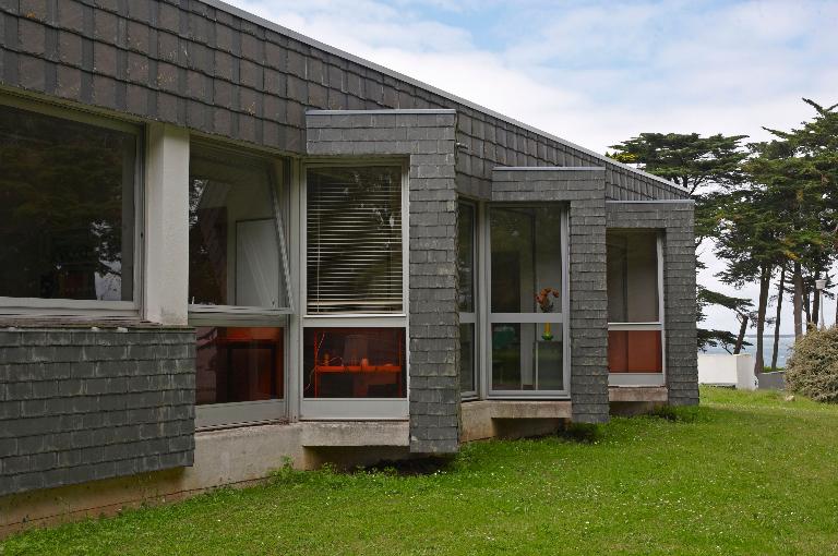 Conciergerie : petit bâtiment au plan carré d’un niveau situé à l’entrée du site, bardé d’ardoise et couvert d’un toit terrasse. Au sud se situe la loge du concierge qui dispose d’une fenêtre en redans et dont l’angle sud-ouest est intégralement vitré afin de permettre la surveillance des allées et venues. Un auvent couvre l’angle sud-ouest laissé ouvert. Le reste du bâtiment se compose d’une entrée à l’est, un petit hall qui distribue les chambres et le séjour pourvu de baies vitrées permettant d’accéder à une terrasse.