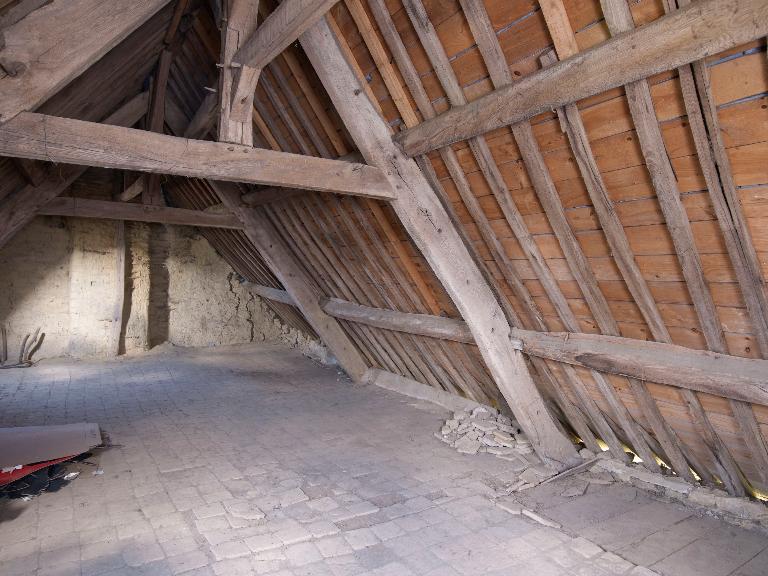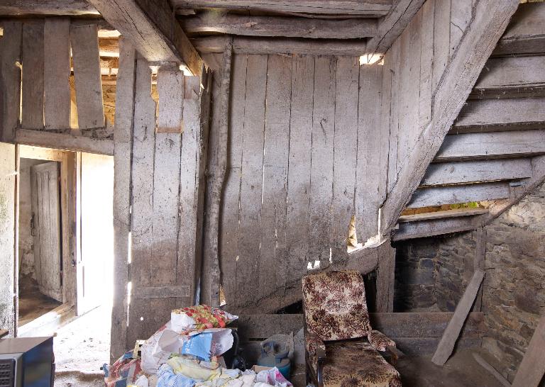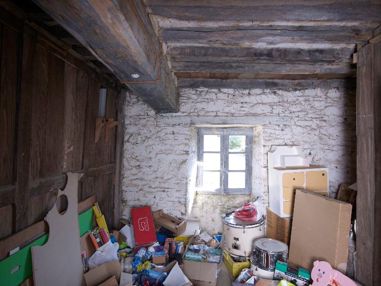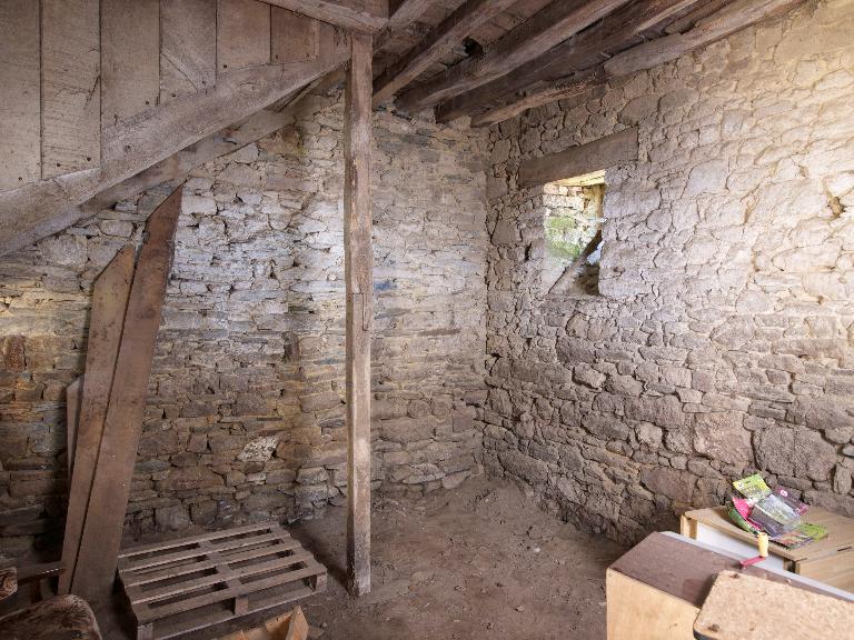 La seconde pièce n’est pas chauffée : au rez-de-chaussée, il s’agit d’un cellier occupant l’angle nord-ouest éclairé d’un jour percé dans le mur nord. A l’étage, une petite pièce est établie au-dessus de la première volée de l’escalier : son usage reste inexpliqué.