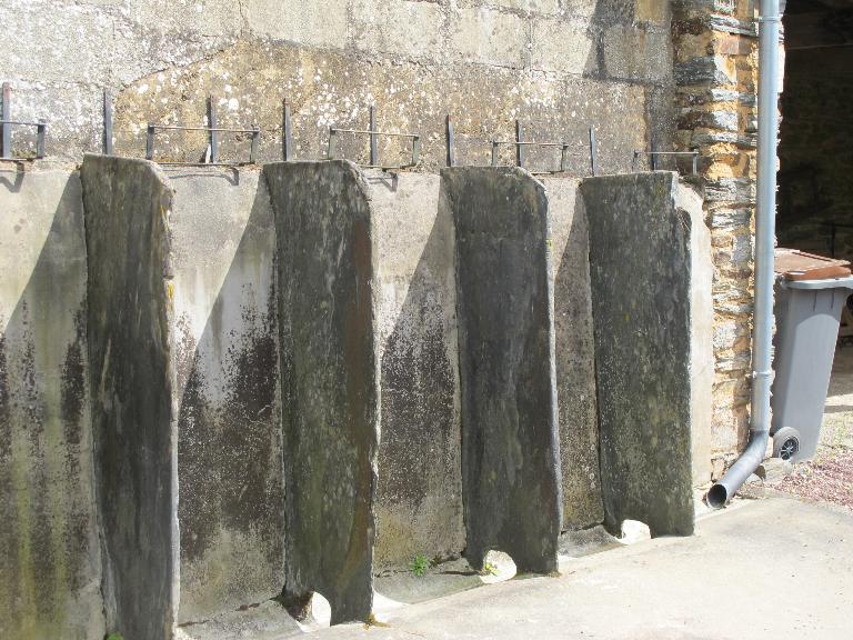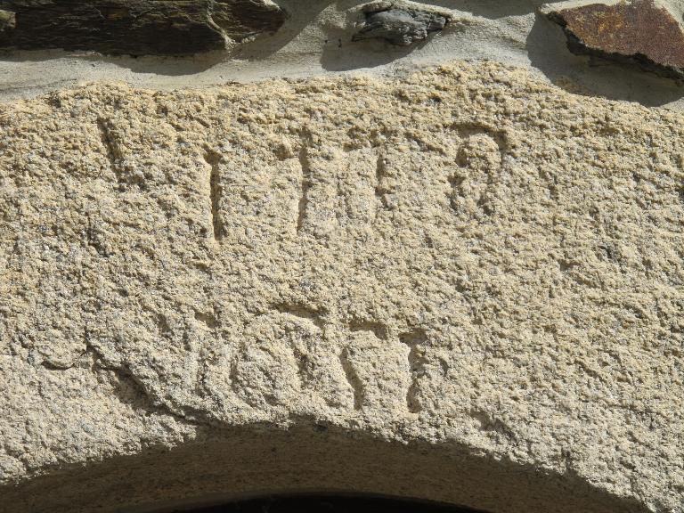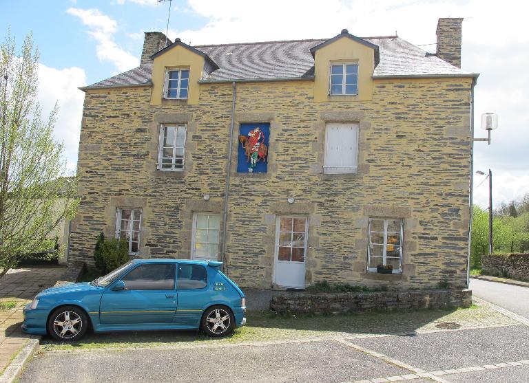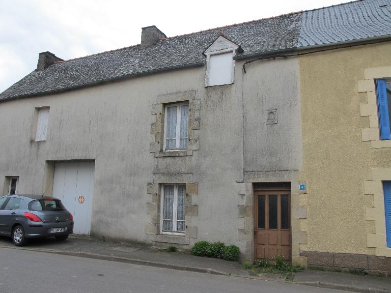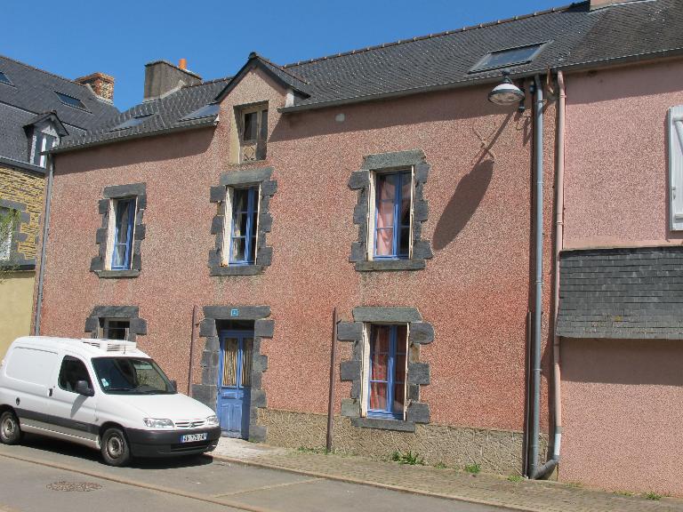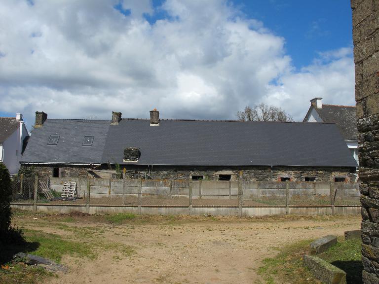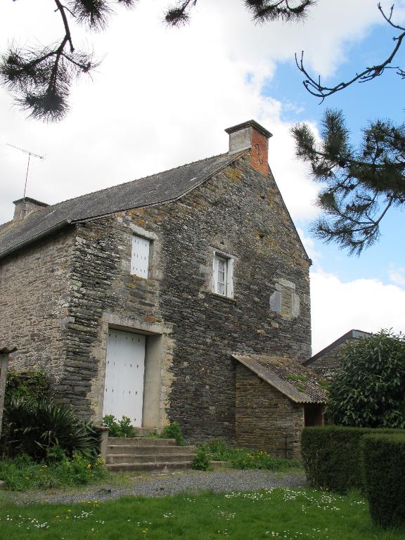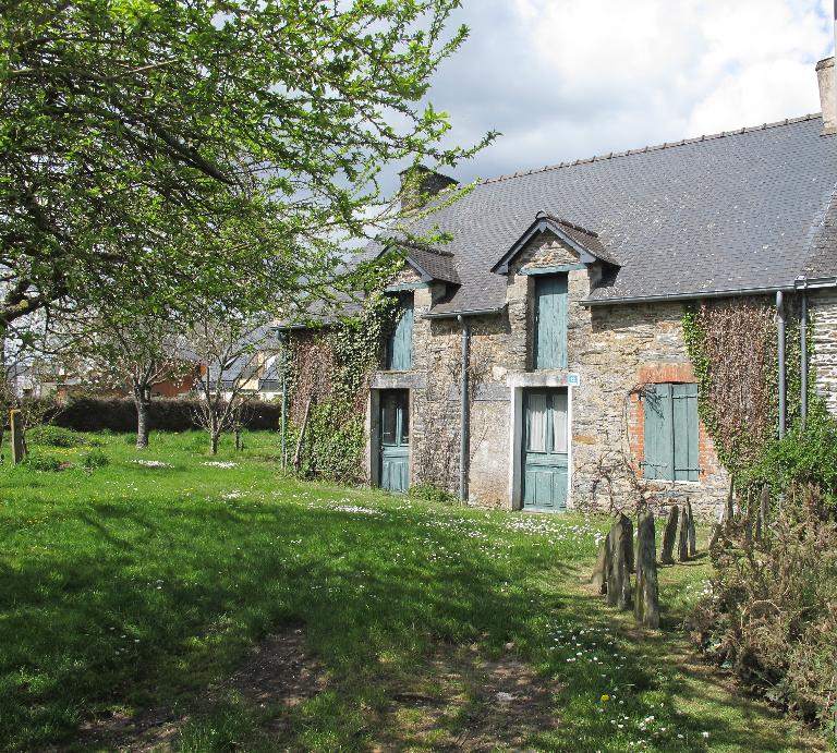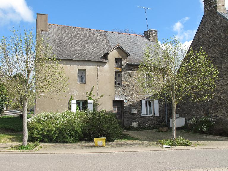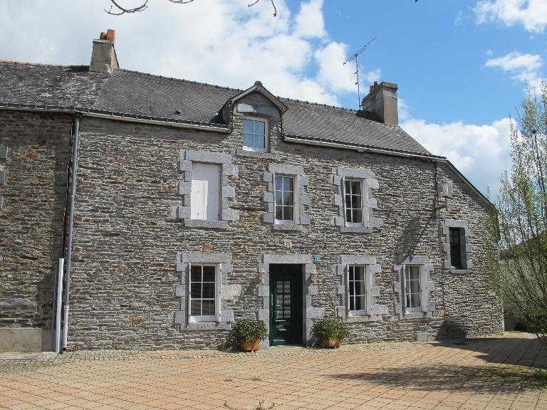 Édifice de plan rectangulaire dont la façade principale présente des désordres dans la maçonnerie ; rez-de-chaussée surmonté d’un étage carré dont les fenêtres forment travées avec les fenêtres inférieures. Fenêtres à feuillures, linteau de bois et appui en schiste, sauf la fenêtre supérieure gauche qui a été agrandie. Percement de la porte gauche ? La porte droite à l’entourage en pierre de taille de granite est cintrée ; deux dates sont gravées dans la partie supérieure : 1651 et 1770. Grande cheminée en schiste dont les consoles dépassent du mur pignon ouest.
