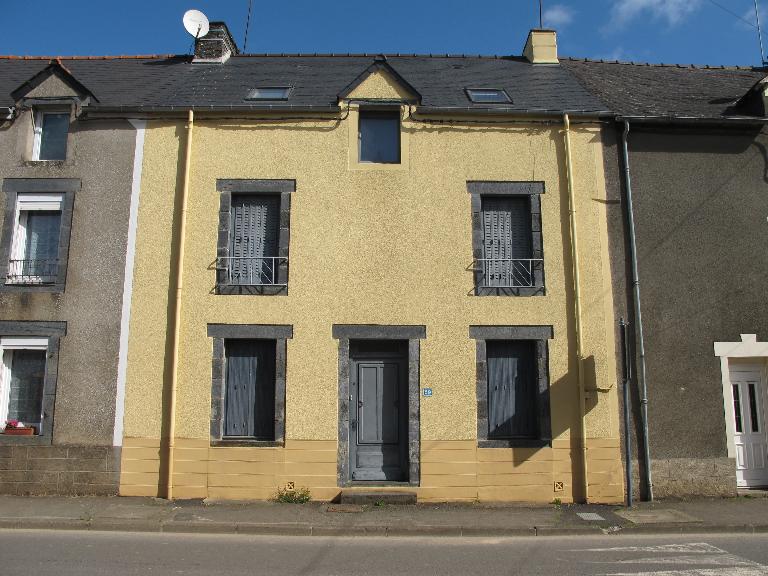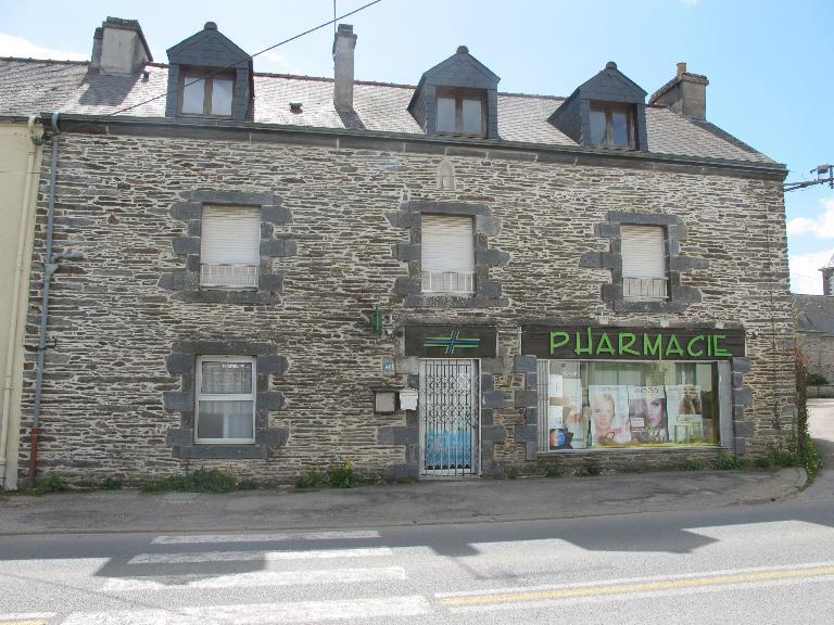 Édifice de plan rectangulaire ; ancien commerce comme le suggère la porte centrale et comme on le voit sur la fig. 50. Aujourd’hui maison de type ternaire : deux pièces symétriques de part et d’autre d’un couloir ; rez-de-chaussée surmonté d’un étage carré et d’un comble à surcroît à lucarne passante à pignon, formant travée avec la porte centrale ; piédroits des baies harpés en pierres de taille de schiste calibrées ; porte inférieure droite transformée en fenêtre.