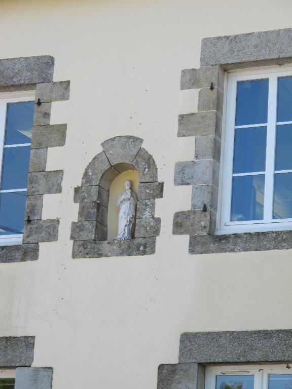 Bâtiment de plan rectangulaire parallèle à la rue ; rez-de-chaussée surmonté d’un étage carré dont les quatre fenêtres forment travée avec les ouvertures inférieures ; moellons enduits ; piédroits des baies harpés en pierres de taille de granite calibrées ; entre les fenêtres supérieures centrales, une petite niche cintrée en granite abrite une statuette de saint Joseph.
