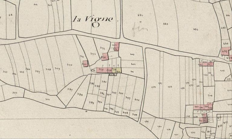* Pl. de la Motte, école, aujourd'hui maison, 1er quart 19e siècle, 1838 et 4e quart 19e siècle.