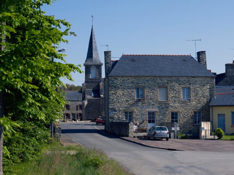 Première maison d’angle (n° 2) figurant sur le cadastre de 1825 (parcelle 665), où elle a un plan en équerre : grand côté sur l’actuelle avenue de la Libération et retour sur l’actuelle rue de Brocéliande, se terminant par un four à pain.