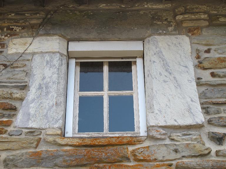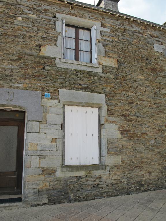 Maison de droite : bâtiment de plan massé ; rez-de-chaussée surmonté d’un étage carré ; fenêtres de l’étage disposées en quinconce par rapport aux baies inférieures ; piédroits des baies harpés en pierres de taille de schiste calibrées.