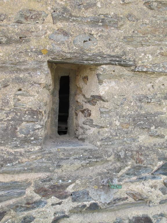 Maison prolongée vers l’ouest par un logis à pièce unique dont la cheminée comporte un linteau en schiste et des piédroits en bois, deux niches murales latérales et deux niches murales dans le cœur.