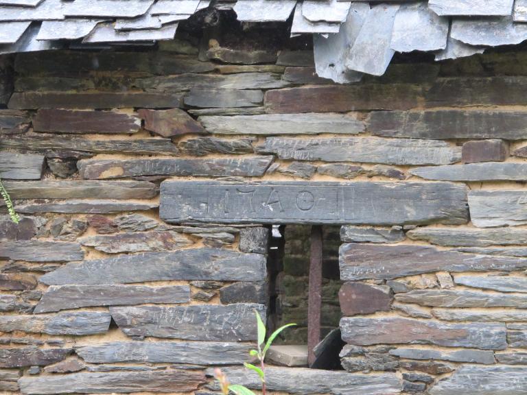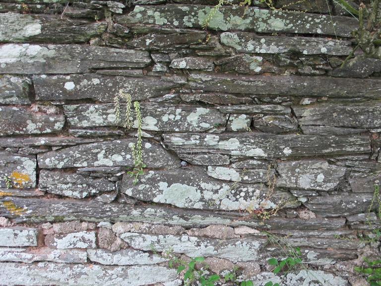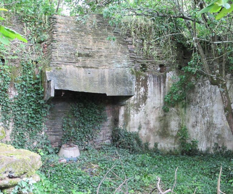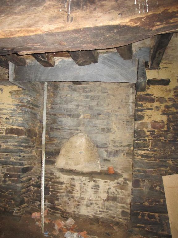 Maison à pièce unique ; cheminée en schiste ; en ruine.