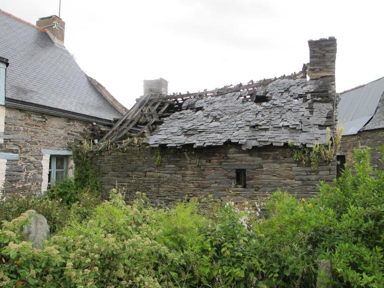 Logis-étable à deux portes ; logis à une pièce ; rez-de-chaussée surmonté d’un comble à surcroît à deux lucarnes passantes formant travées avec les portes ; coyau ; linteaux en bois, piédroits des baies en moellons de schiste chaulés ; soue en prolongement à l’est. Étable en retour à l’est, avec petit jour sur le mur ouest dont le linteau porte la date 1740 ; les deux portes sont ouvertes sur le mur est ; à l’intérieur, une petite cheminée intégrée dans le mur servait à la préparation de la nourriture des bêtes ; à la lecture du cadastre de 1824, cette étable dépendait de la ferme 2 ; cependant, les portes donnant sur l’espace devant la maison 3 et son état actuel, en ruine, posent question.