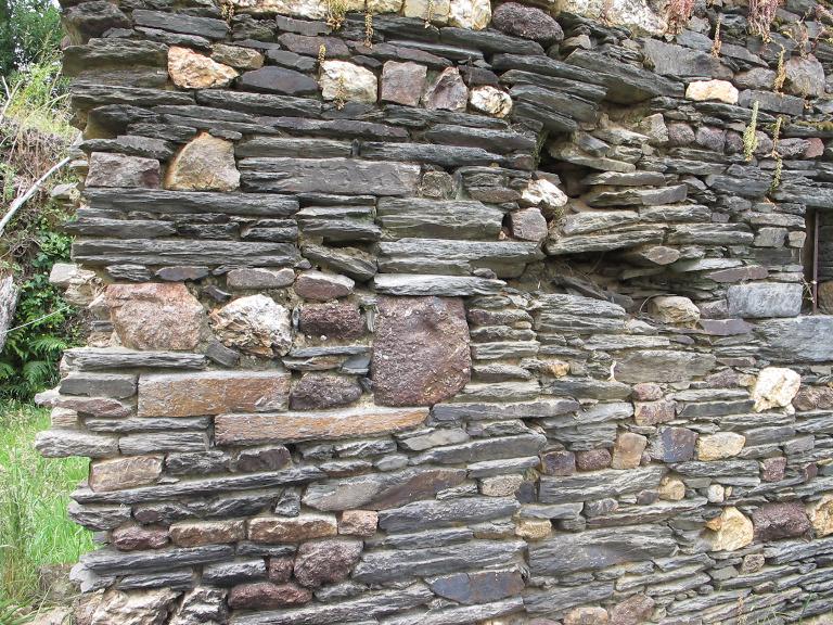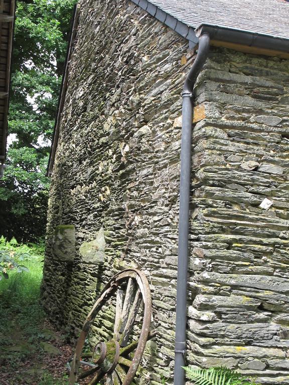 Logis-étable à deux portes ; rez-de-chaussée surmonté d’un haut surcroît à lucarne rampante formant travée avec la porte du logis ; piédroits des baies en moellons de schiste, linteaux en bois, sauf celui de la porte, en schiste, appuis en dalle de schiste. La cheminée en schiste est encadrée de deux niches ; piédroits et consoles chanfreinés, ces dernières ressortant très longuement du mur-pignon ouest.