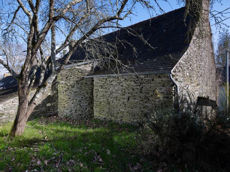 Ancienne ferme de plan rectangulaire orientée vers le sud-est, entièrement réalisée en moellons de schiste et couverte en ardoise.