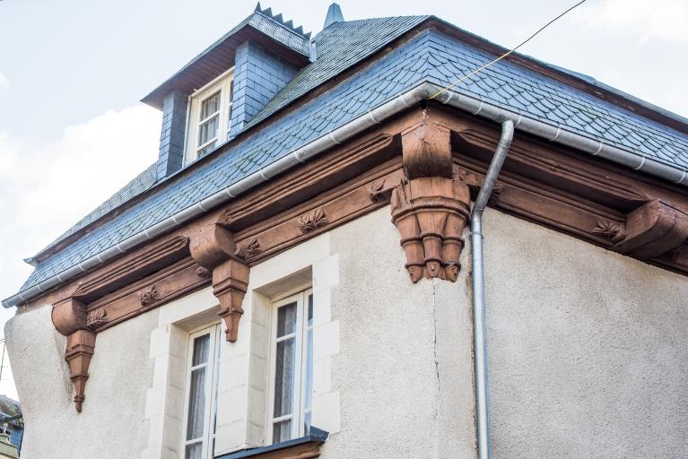 Maison d'angle à encorbellement. La présence d'un mur en encorbellement du côté de la rue des Douves témoigne d'un 2nd étage disparu. Celui-ci est représenté sur une gravure de 1891 ainsi que sur une carte postale du début du XXe siècle.