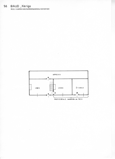 La grande ferme de Kerigo est remontée en 1826 à l'emplacement d'une précédente ferme du 16e siècle dont elle remploie, à l'est, une porte et une cheminée. L'appentis postérieur date de la seconde moitié du 19e siècle. Le four à pain figure sur le cadastre ancien ainsi que le logement secondaire, situé en vis à vis de la ferme et remonté dans la seconde moitié du 19e siècle. La remise date du début du 20e siècle.