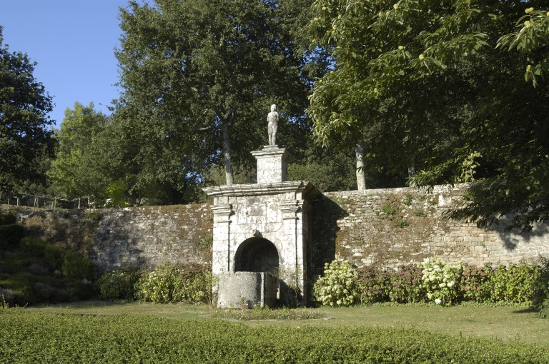 Le monument date de la fin du 17e siècle, il est commandité par Pierre de Lannion, seigneur de Quinipily, pour son château. L'histoire de cette oeuvre remonte à l'Antiquité, elle commence dans la commune voisine de Bieuzy sur la butte de Castennec près du prieuré de la Couarde : une cuve associée à une statue antique repésentant une femme, probablement une Vénus, appelée "Notre-Dame de la Couarde", y était vénérée par le peuple depuis des temps immémoriaux. En 1661, sur la demande de missionnaires, le comte Claude de Lannion fait jeter la statue dans le Blavet. En 1664, elle est ressortie de la rivière puis de nouveau jetée sur la demande de l'évêque de Vannes. En 1698, Pierre de Lannion sort la statue du Blavet et la fait transporter avec la cuve au château de Quinipily. Lorsqu'il veut la faire retailler pour lui redonner "figure humaine", la pierre éclate en morceaux. Il fait alors sculpter la statue actuelle et la pose sur un piédestal neuf au bas duquel est placée la cuve. L'eau y est amenée au moyen de tuyaux, à partir des sources voisines, notemment celle de la fontaine Saint-Michel située au nord. Des insciptions latines sont gravées en relief sur le piédestal. Côté ouest : VENERI VICTRICI VOTA C.I.C. (Erigée à Vénus victorieuse par Caius Julius César). Côté sud : VENUS ARMORICUM ORACULUM. DUCE JULIO, C.C. CLAUDIO MARCELLO ET L. CORNELIO LENTULO COSS AB V.C. DCCV (Vénus, oracle des Armoricains, Jules César étant chef, Caius Claudius Marcellus et Lucius Cornelius lentulus consuls, l'an de Rome 705. Soit six ans avant Jésus-Christ). Côté est : CAESAR GALLIA TOTA SUBACTA DICTATORIS INDE NOMINE CAPTO AD BRITTANIAM TRANSGRESSUS NON SEIPSUM TANTUM SED PATRIAM VICTOR CORONAVIT (César, après avoir soumis toute la Gaule et pris le titre de dictateur, après avoir passé dans la Bretagne, non seulement se couronna lui-même par ses victoires, mais couronna sa patrie avec lui.). Côté nord : PETRUS COMES DE LANNION, PAGANORUM HOC NV MEN POPULIS HUC USQUE VENERABILE SUPERSTI TIONI ERIPUIT IDEM QUE IN HOC LOCO JUSSIT COL LOCARI, ANNO DOM MDCXCVI INI (Pierre, comte de Lannion, ayant arraché à la superstition cette divinité païenne, vénérée jusque-là par les peuples, ordonna qu'elle fut placée en ce lieu. L'an du seigneur 1696).