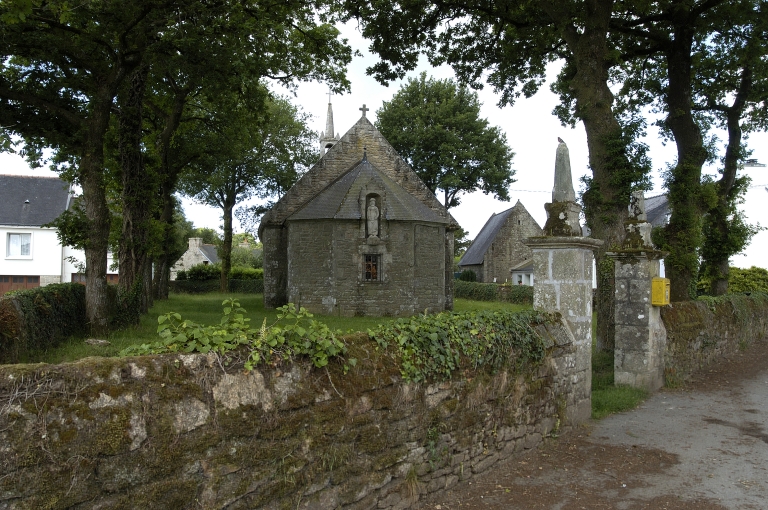 La chapelle adopte un plan rectangulaire à chevet plat dominé à l'ouest par un clocheton et éclairé par des fenêtres cintrées. Une sacristie à pans coupés couverte d'une croupe polygonale est adjointe à l'est en alignement. L'ensemble est construit en moellon de granite.