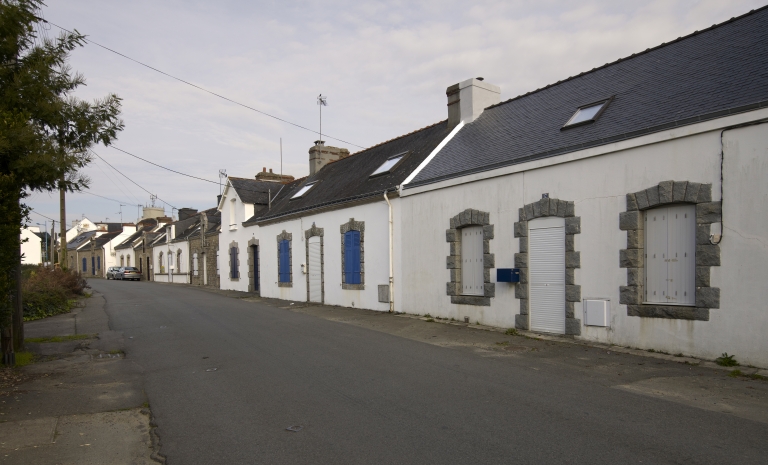 Est considéré comme faisant partie de l'emprise du bourg d'Etel : - 1- La partie ancienne d'aspect fortement urbaine constituée à partir des quartiers du port et de l'église (voir dossiers quartiers) et où prédominent les alignements de maisons mitoyennes. - 2- Les principales rues aboutissant à ces deux quartiers où l'on découvre un habitat du 19e siècle également mitoyen et parfois complété par des constructions du 20e siècle : rue Leclerc (fig.7), rue V. Hugo, rue Foch, rue Croix-Izan, rue Surcouf. - 3 - L'ancien quartier des conserveries au nord de la rue de la Fontaine, construit pour l'essentielle dans la première moitié du 20e siècle : rue Botrel, rue J. Bart, rue de la Corderie ou subsistent quelques hangars et anciens ateliers également liés à la construction navale, ainsi qu'un habitat modeste (fig.8 et 11). - 4 - Les quartiers des années 1920-1930, d'une part au sud du centre bourg et comprenant également les premières maisons de villégiature et le lotissement communal de La Falaise : Bd De Gaulle (Bd de la Plage), rue de l'Océan, rue des Dunes, rues Surcouf et de Penester, d'autre part à l'est de la rue Leclerc : les rues Brizeux, Traversière et P. Loti, et enfin, au nord : la rue du Souvenir, la rue James. - 5 - Les quartiers urbanisés dans la seconde moitié du 20e siècle, qui comblent les espaces libres des secteurs précédemment décrits et au delà, au nord de part et d'autre de la rue L. Bougo, à l'est de part et d'autre de l'axe nord-sud constitué par les rues Brizeux, Traversière et P. Loti, et au sud le quartier des écoles et Ouest-Penester.