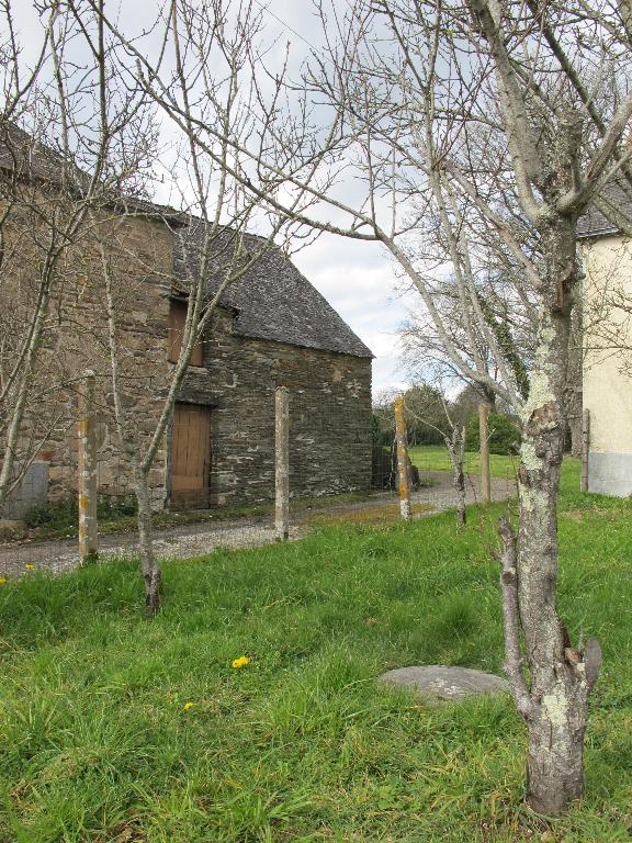 Le bâtiment se prolonge de chaque côté du logis. À l’est, une dépendance dont la petite porte a été bouchée (?), surmontée d’un grenier auquel on accède par une gerbière à linteau de bois délardé ; Elle se prolonge par une grange ou une remise dont la grande porte s’ouvre sur le petit côté est du rectangle ; un appentis postérieur perpendiculaire dans l'angle nord-est, prolongé par une rangée de palis, laisse supposer l'existence d'une soue. À l’ouest, quelques bouleversements dans la maçonnerie au niveau de la souche donnent à penser à une transformation dans la destination de cette partie du bâtiment ; le linteau de la porte est constitué d’une pierre de taille de schiste, celui de la fenêtre (appui en ciment) remploie un linteau de cheminée monté à l’envers (fig.).