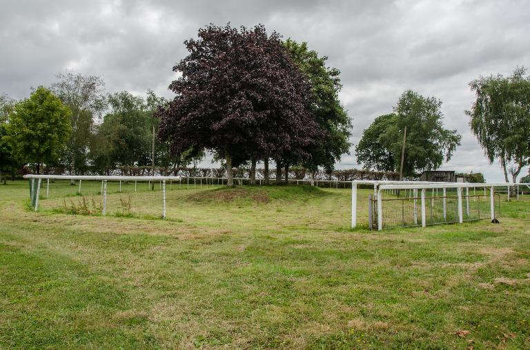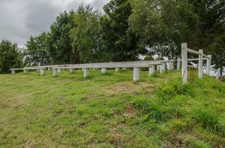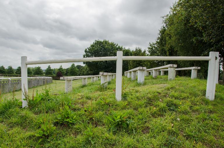 Les tribunes se situent au sud du site. Il s’agit de deux rangées de quatre bancs en bois installés sur une butte de terre.