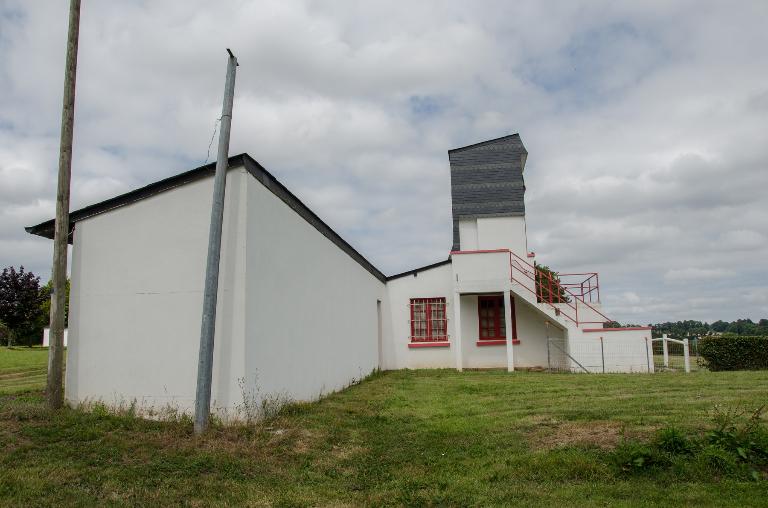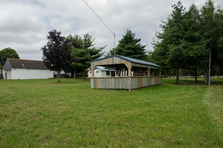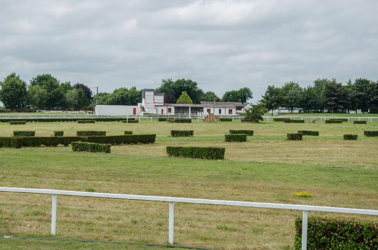 Le pavillon du pesage se situe au sud du site et à l’ouest des pistes. De plan rectangulaire, il est construit en aggloméré de ciment avec un toit à deux versants en ardoise. Il regroupe le