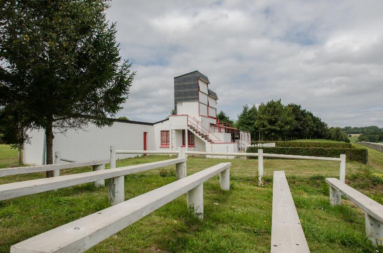 Deux tours de contrôle juxtaposées se situent dans le prolongement sud du pavillon du pesage. Elles sont élevées en aggloméré de ciment avec un toit à un versant en ardoise. Leur façade sud, ouest et nord est recouverte d’un essentage en ardoise. Elles permettent aux