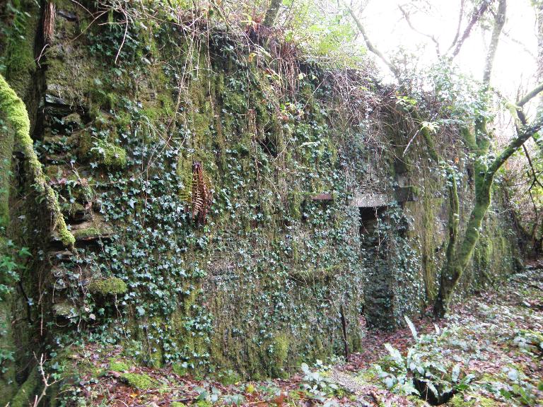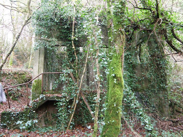 - un bâtiment près du puits : il est réalisé en béton. Il se compose d'une seule pièce surélevée, à laquelle on accède par un escalier extérieur. Deux façades du bâtiment sont complètement ouvertes. A l'intérieur, deux bacs réalisés sur la hauteur de la surélévation, pourraient correspondre à des réservoirs alimentant une scie hydraulique.