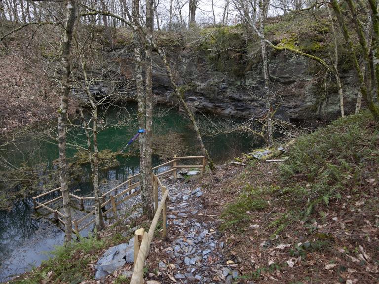 Excavation n°2 : excavation proche de la précédente. Elle semble avoir été, d'abord exploitée à ciel ouvert puis en puits à la base de la seule paroi verticale (10 mètres de haut). Le puits n'est pas visible, s'il y en a un. L'ensemble est noyé.