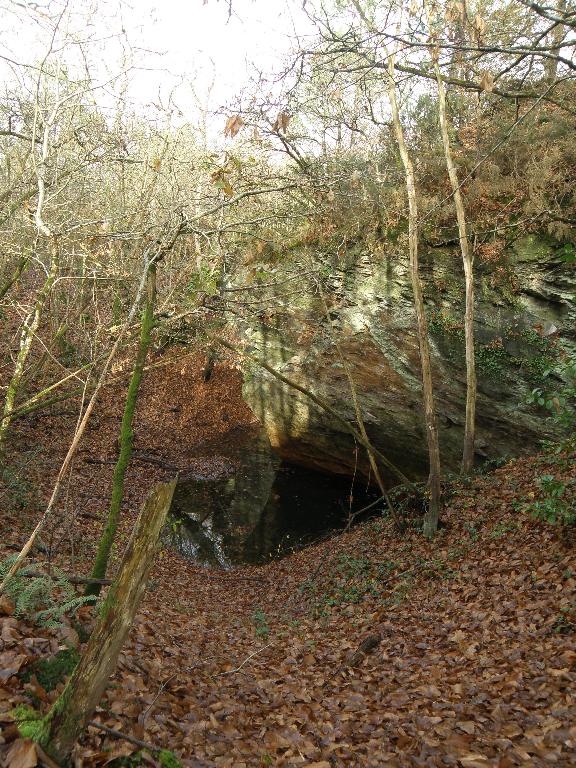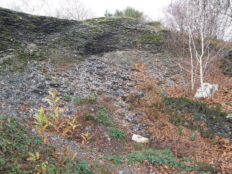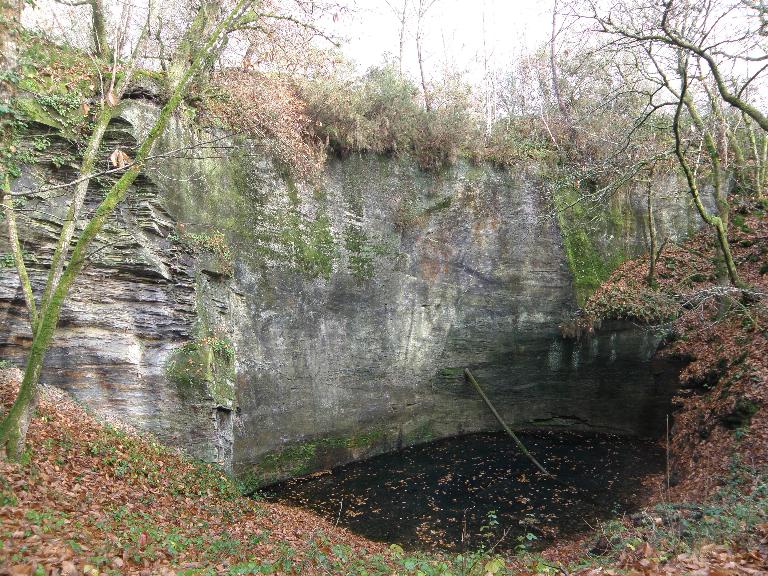 Excavation n°6 : excavation noyée, dont le front de taille surplombe le fond. Il mesure 6 à 8 mètres de haut. Un puits pourrait se trouver à sa base.