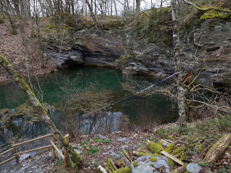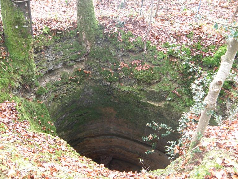 Excavation n°3 : Puits vertical, situé au dessus du puits n°2. L'excavation mesure 5 à 6 mètres de diamètre. Le fond est noyé.