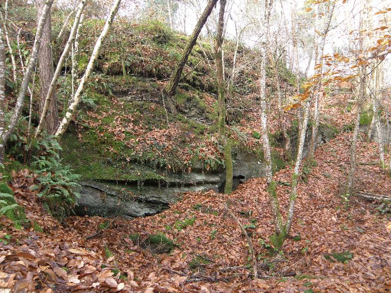 Excavation n°5 : excavation arrondie, ayant une paroi verticale de 8 à 10 mètres de haut. Le fond est noyé. A l'ouest, se trouve un affaissement auprès d'une paroi de 3 mètres de haut. Il pourrait s'agir d'une ancienne excavation remblayée.