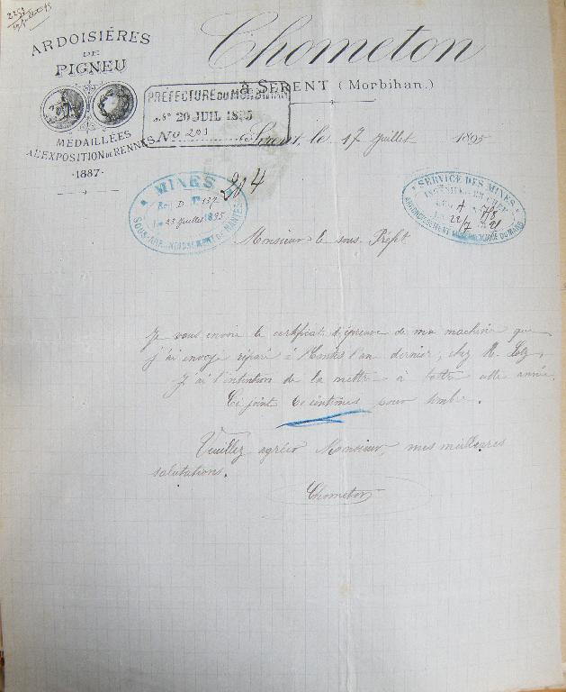 En août 1861, M. Billy reçoit l’autorisation d’exploiter à ciel ouvert, sur un terrain appartenant à Julien Trégouet et à Mathurin Marot.