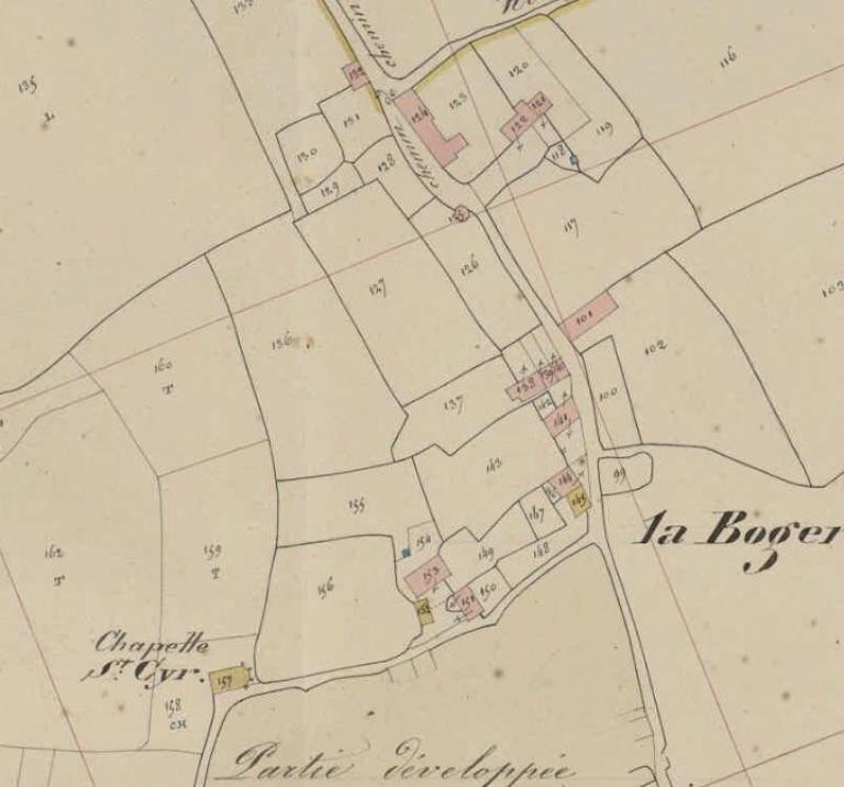 Le hameau est probablement d’origine ancienne puisqu’il s’est constitué à proximité de la chapelle Saint-Cyr-et-Sainte-Julitte qui remonte au 16e siècle ; cependant, il ne compte aucune maison antérieure au 18e siècle. La plupart des constructions date donc du 19e siècle, dont une ferme qui se démarque du reste des maisons, porte la date 1816. Le village a peu évolué depuis 1840 (d’après le plan cadastral), néanmoins, trois maisons ont été construites ou reconstruites dans les années 1880 à 1900.