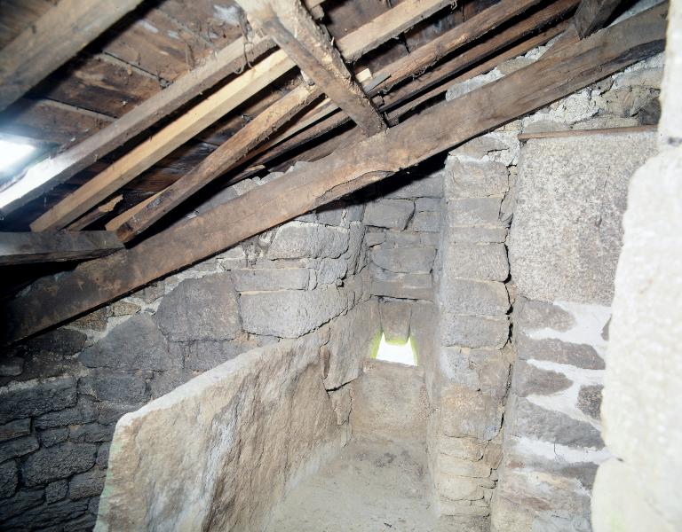 A l’intérieur, la qualité des portes d’angle qui distribuent l’escalier en vis et l’ancienne pièce ouest, la tour d’escalier, comme l’armoire murale en arc brisé, n’ont rien à envier aux éléments en usage dans un manoir, la différence se faisant dans la hauteur modeste de la salle.