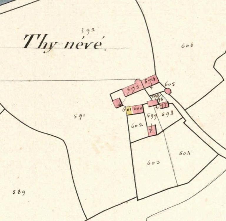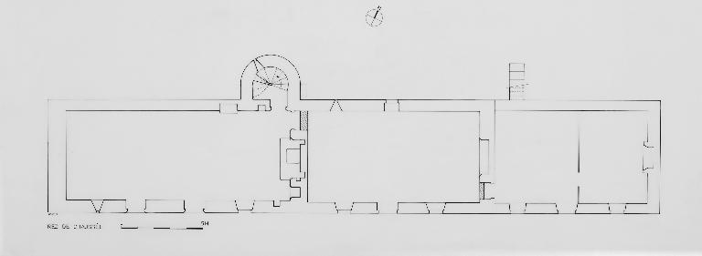 La chaîne d’angle ouest est formée de très grandes pierres sur une base talutée en raison de la légère déclivité : l’ancienne chaîne d’angle ouest est remployée dans la chaîne d’angle est du second logis du 18e siècle ; quant aux pierres de taille qui constituent le mur de façade de ce second logis, voir du 3e édifié au 19e, elles sont probablement aussi remployées du premier édifice, plus long.
