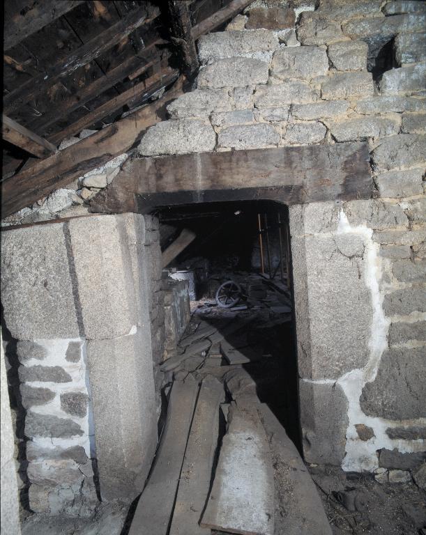 Au rez-de-chaussée, les deux espaces à usage de salle et d’étable sont distribués par deux portes différentes : l’accent est mis sur celle de la salle, en anse de panier mouluré avec base des piédroits à griffes, qui prime sur celle de l’étable, rectangulaire simplement chanfreinée.