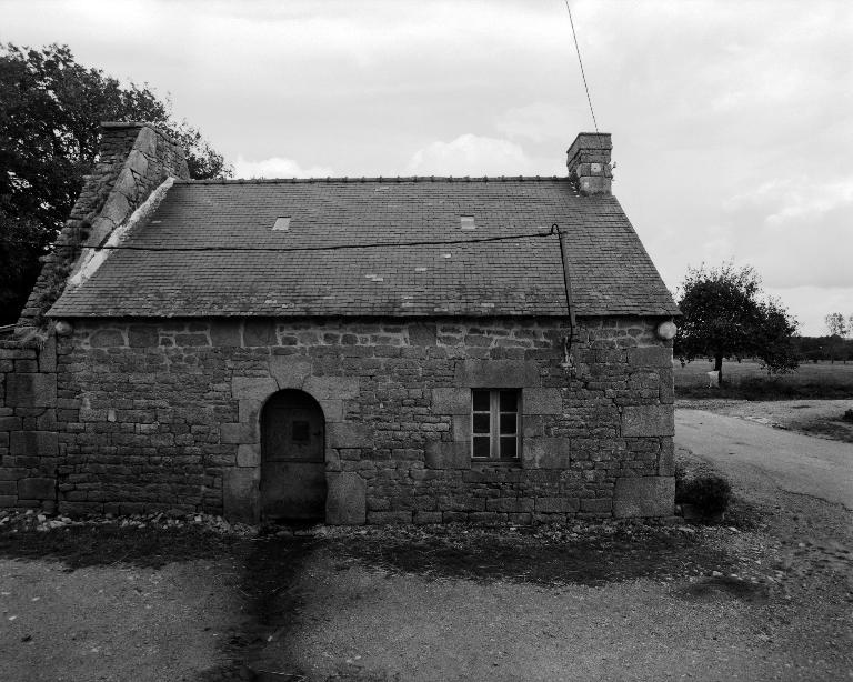 La maison dont le pignon ouest est formé de celui de l'ancienne maison en prolongement, est construite en moellon de granite avec chaîne d'angle en grosses pierre de taille à l'est. Sa façade ne s'ouvre que d'une porte en plein cintre très soignée à clé d'arc à crossettes, et d'une fenêtre rectangulaire au module de l'époque.